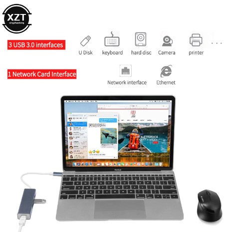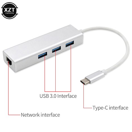 USB Type C to LAN RJ45 Ethernet HUB USB 3.0 Gigabit 1000Mbps for Windows MAC