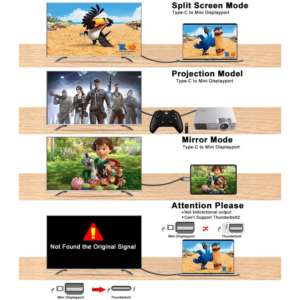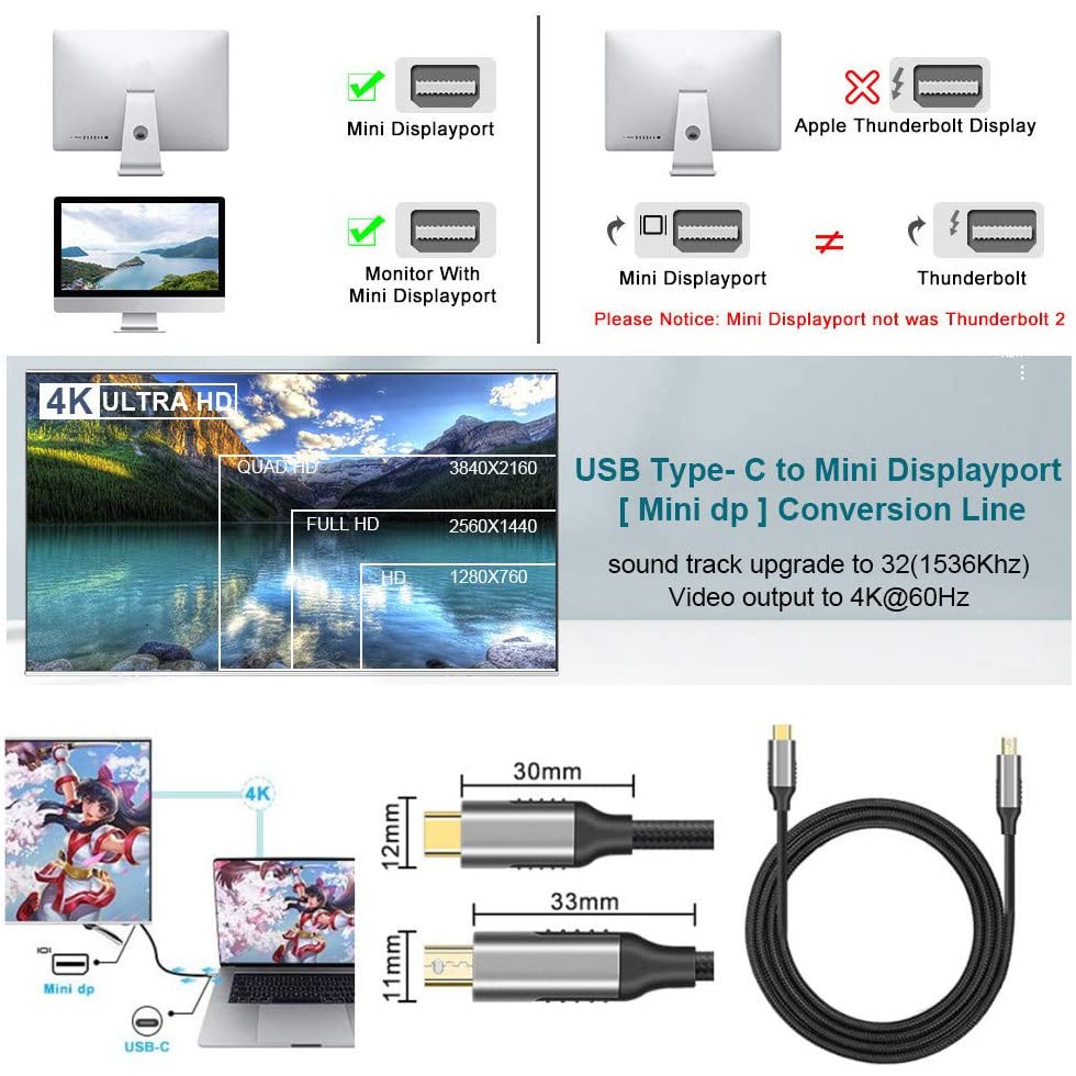 USB Type C to Mini DP Cable 4K@60Hz