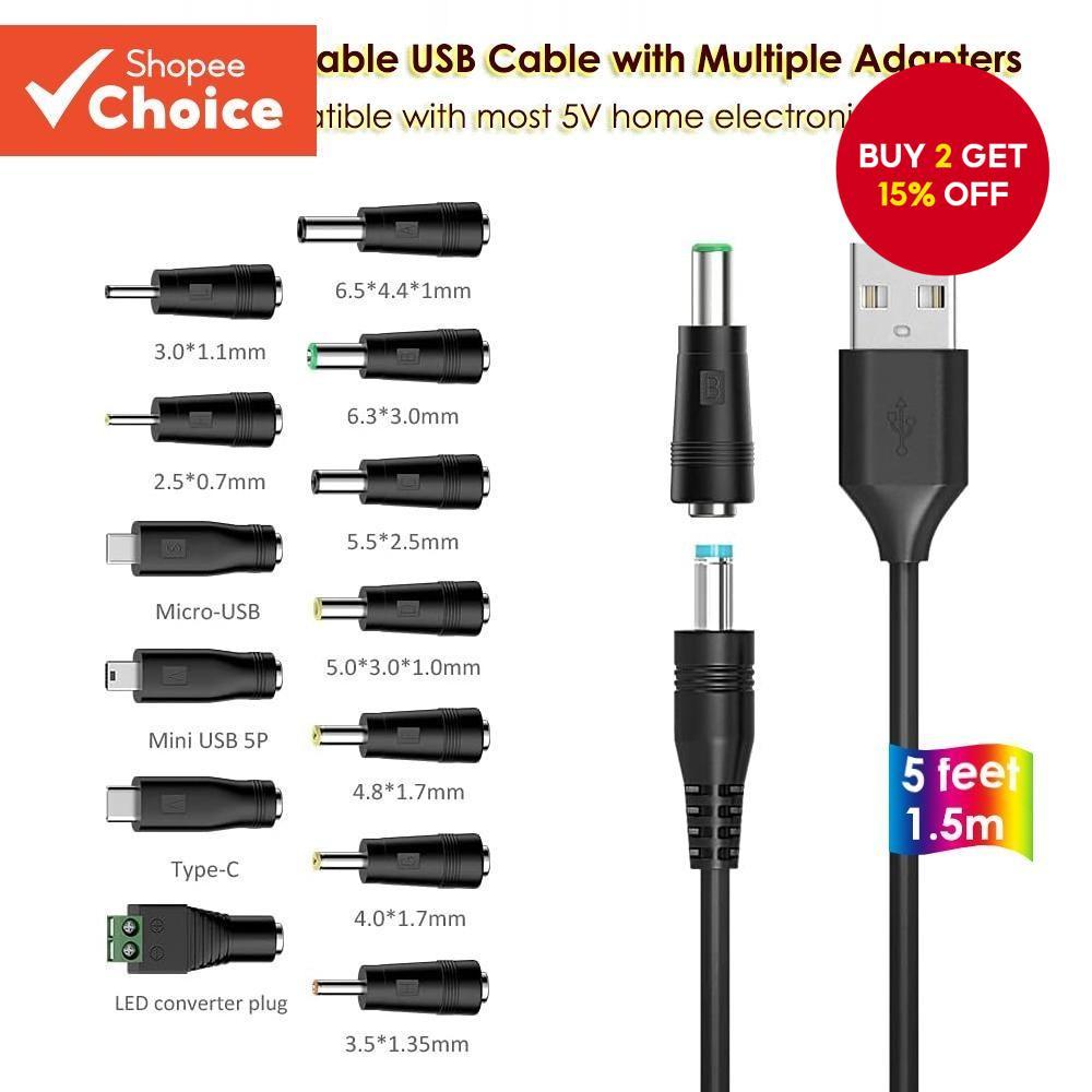USB to DC 5V Universal Power Cable, DC Plug 5.5 * 2.1mm Jack Charging Cord with 13 Connector Tips