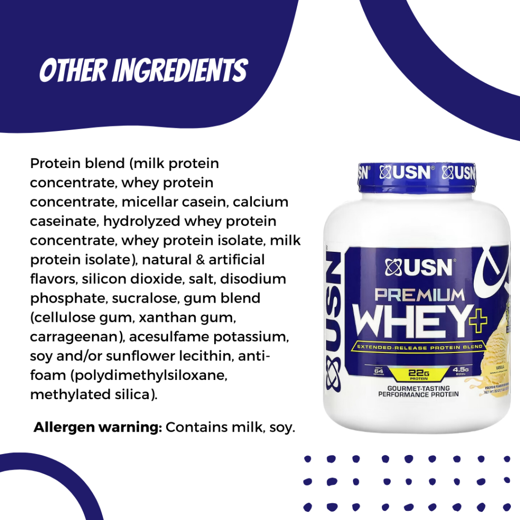 USN, Premium Whey+, Whey Protein Powder, Muscle Building, Meal Replacement Shake, Calcium, Potassium, 5 lbs