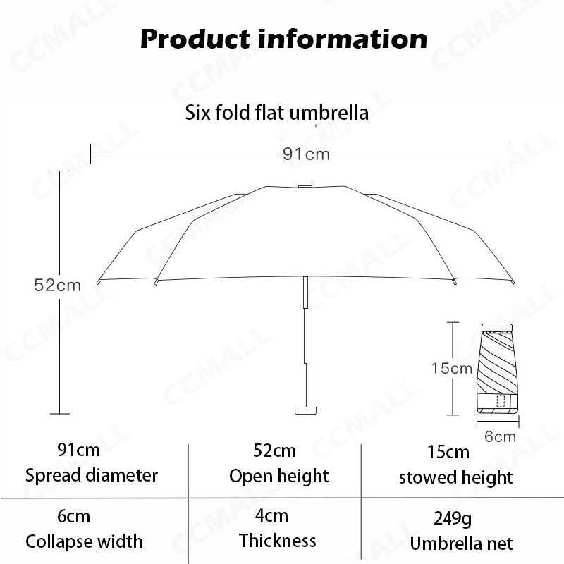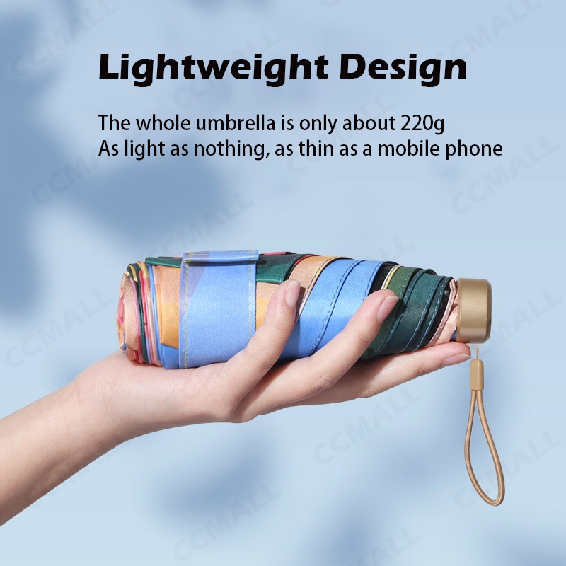 UV Mini sun umbrella flat Six-fold umbrella black glue sunscreen anti-ultraviolet umbrella folding mouth bag umbrella