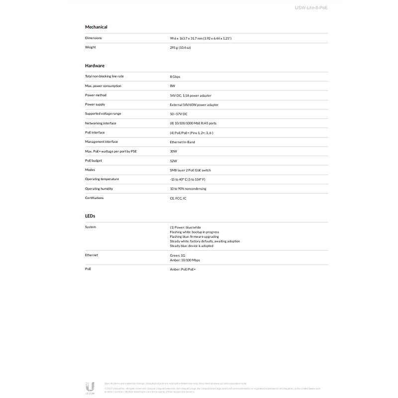 Ubiquiti UniFi 8 PoE Switch with 8 Gigabit Ethernet Ports [Model No: USW-Lite-8-PoE] - Lite 8 PoE USW-Lite-8-PoE (52W)