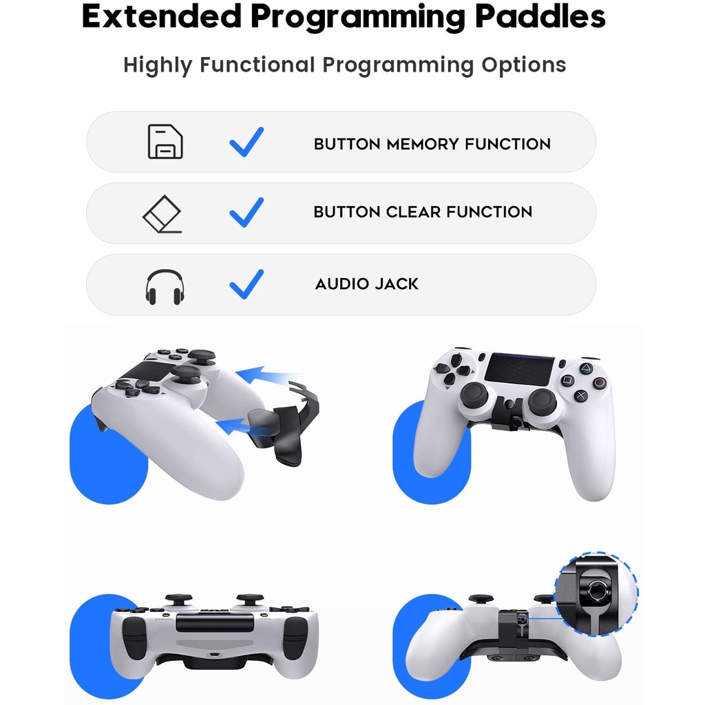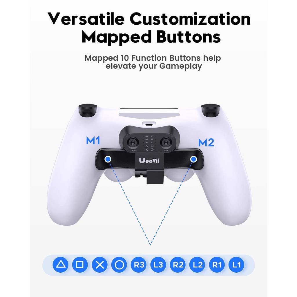 UeeVii PS4 Controller Paddles, Back Bracket for Playstation 4 Controller, Back Button Attachment/Turbo Function FPS/Cust