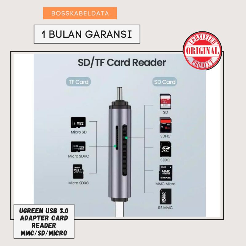 Ugreen Dongle Adapter Card Reader SD-SDHC-SDX-MICRO SD-MICRO SDHC Usb C Original Warranty