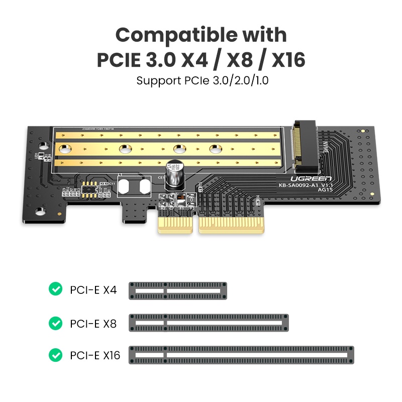 Ugreen PCIE to M2 Adapter NVMe M.2 PCI Express Adapter 32Gbps PCI-E Card x4/8/16 M&B Key SSD Computer Expansion Cards
