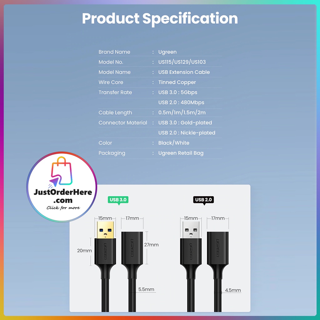 Ugreen USB Extension Cable Type A Male to Female USB 3.0 - 3m
