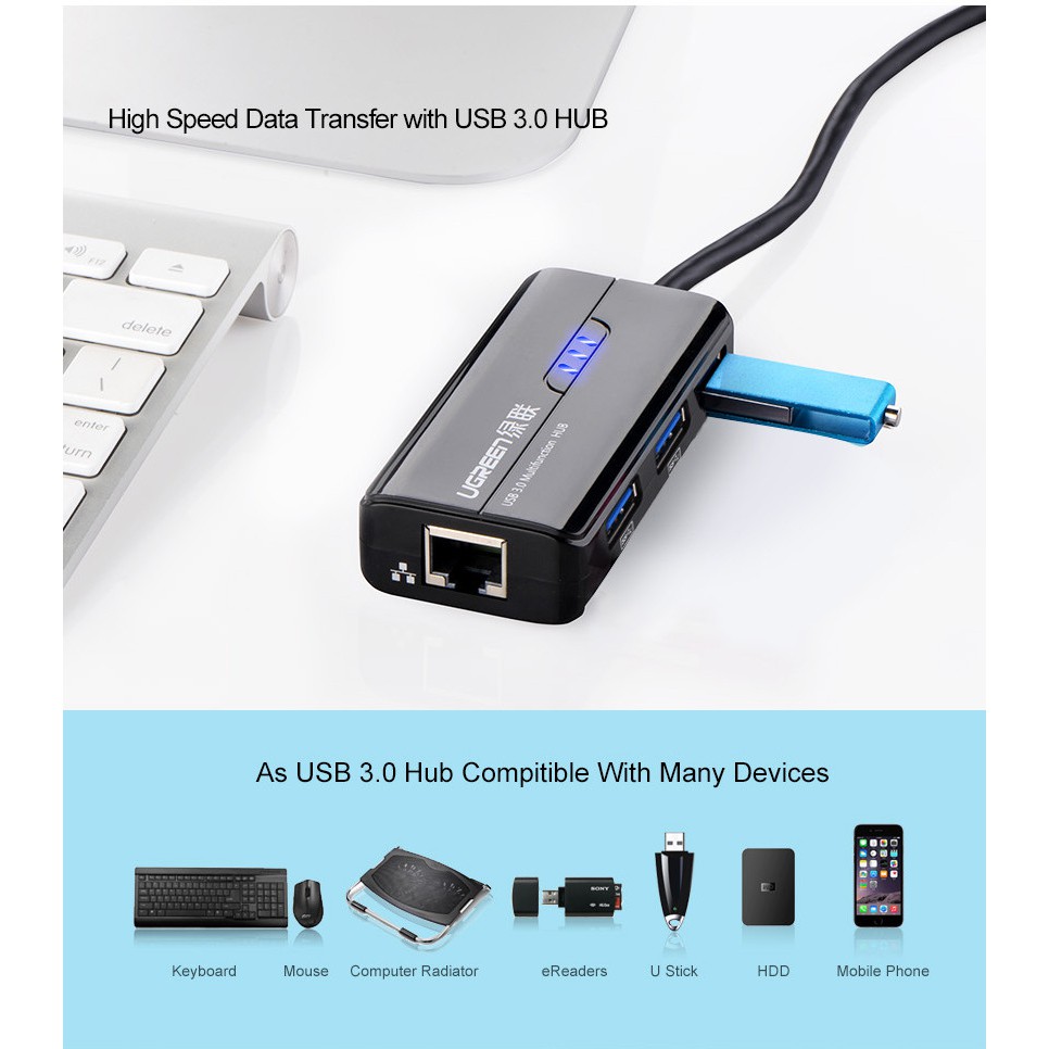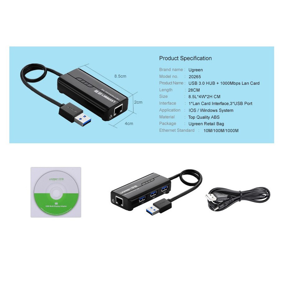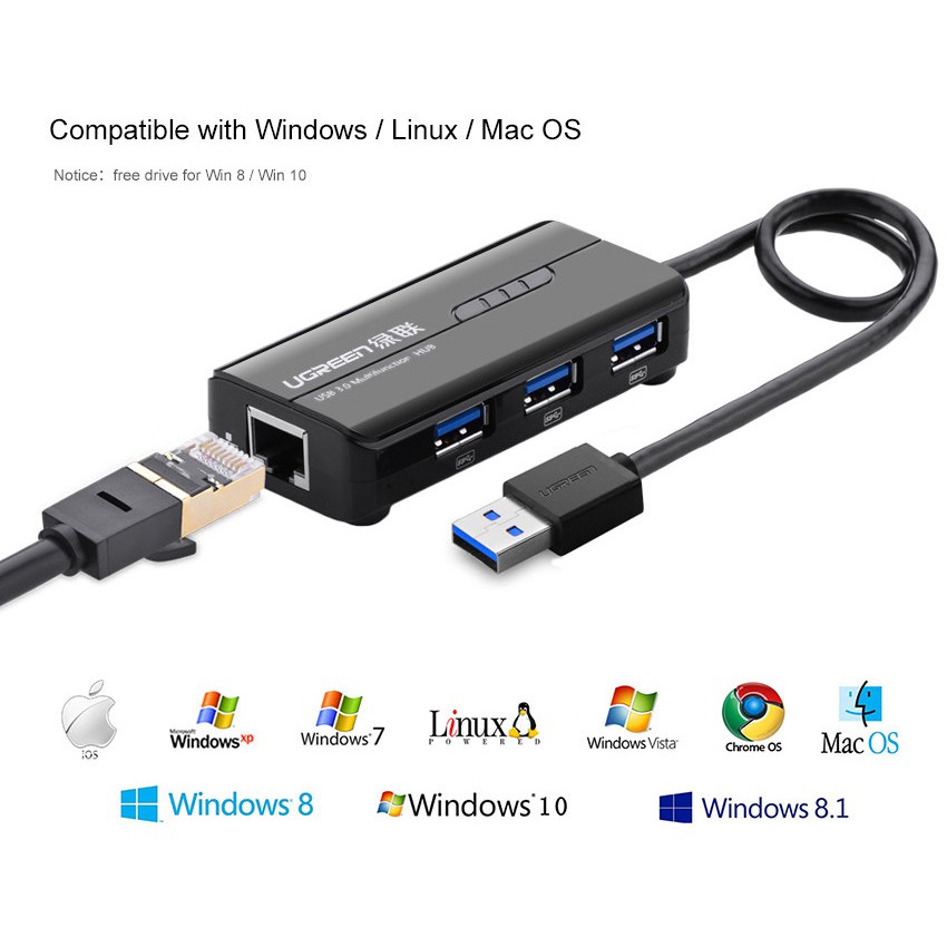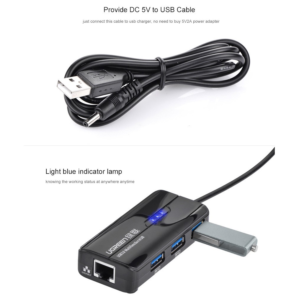 Ugreen USB to LAN RJ45 Gigabit 1000 Mbps Ethernet USB HUB 3.0 for Laptop Windows Mac