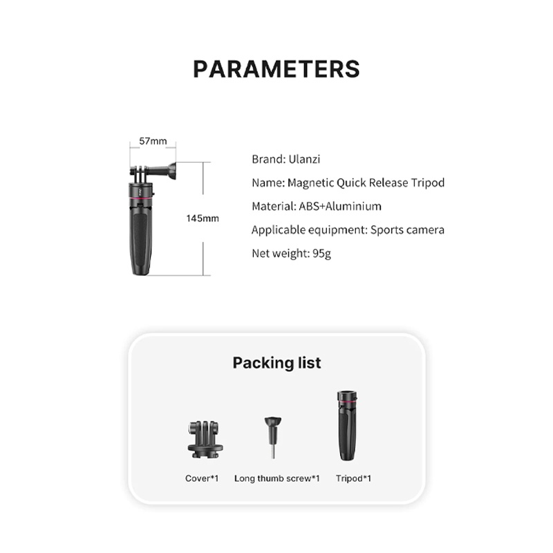 Ulanzi Go Quick II Magnetic Quick Release Mini Tripod For Action Cameras and GoPro Mounts (2964)