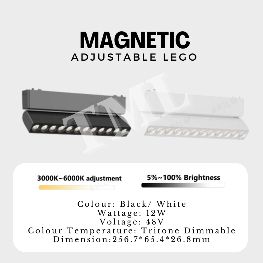 Ultra Slim Magnetic Track Light System Black White TRITONE Dimmable Remote DC 48V