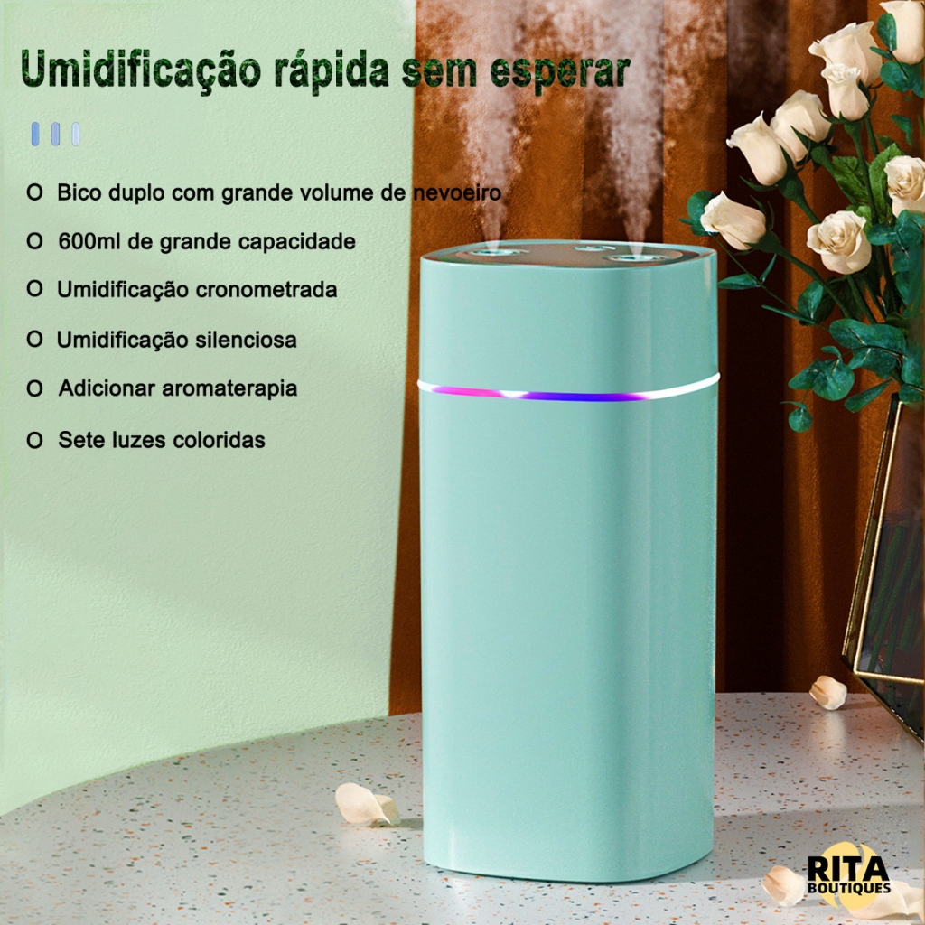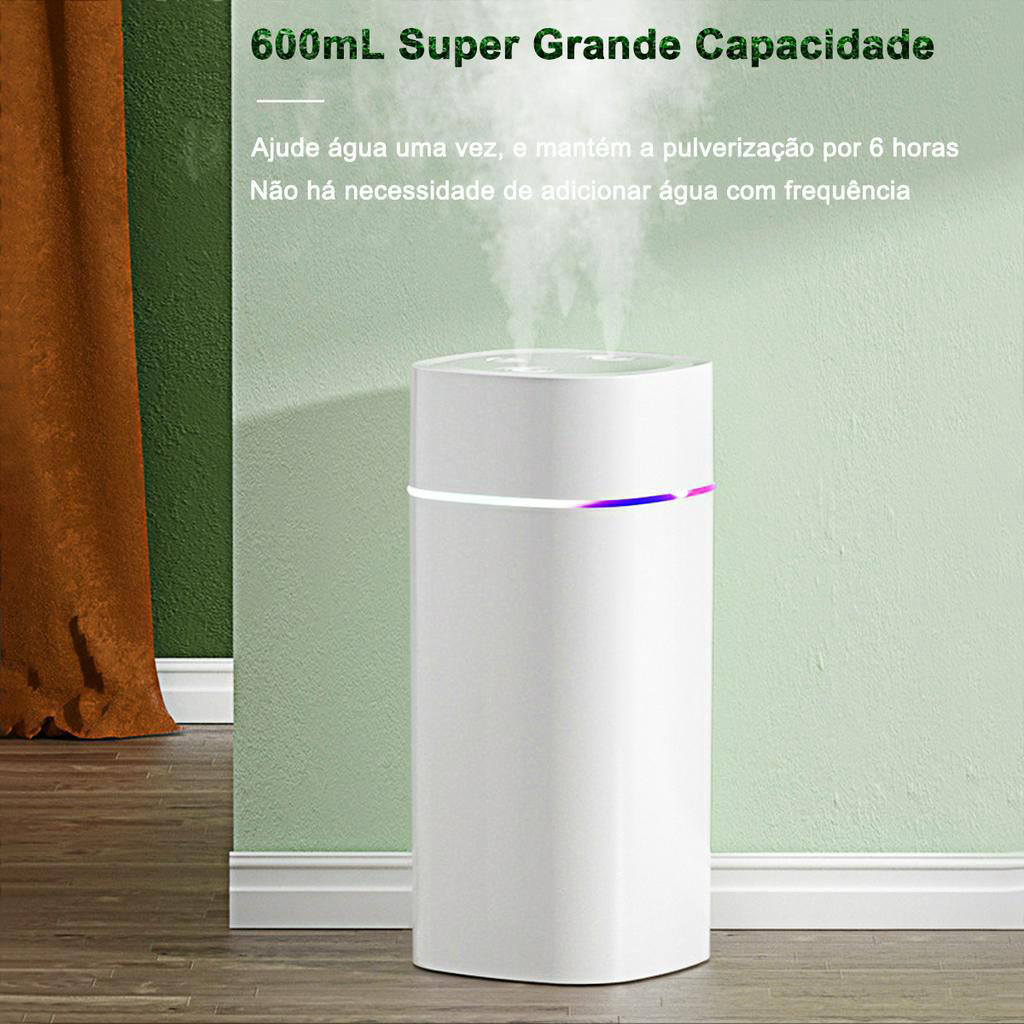 Ultrasonic Air Humidifier Large USB Air Freshener with Portable Double Nozzle Ambient LED