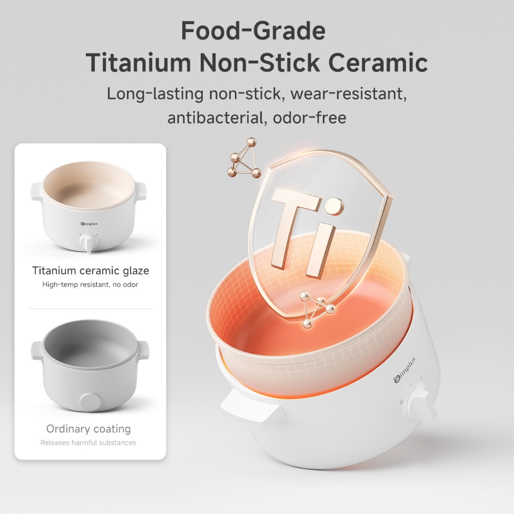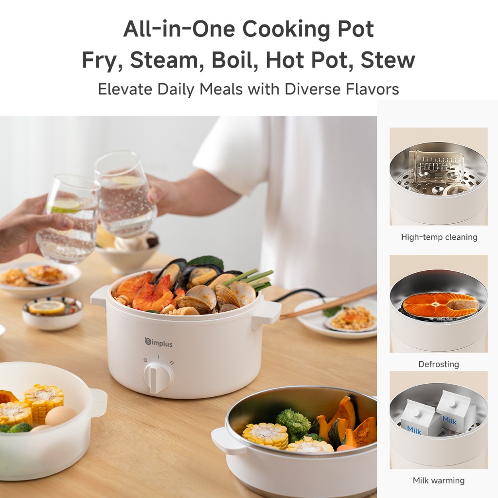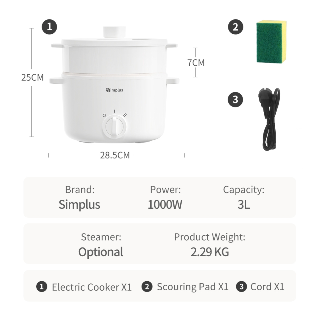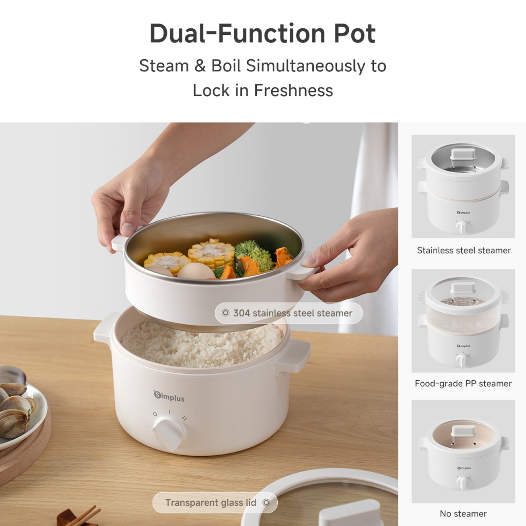Simplus 1.8L Electric Cooker | 600W Power | Stainless Steel Steamer | Titanium Ceramic Coating | Multi-Cooker DZGH013