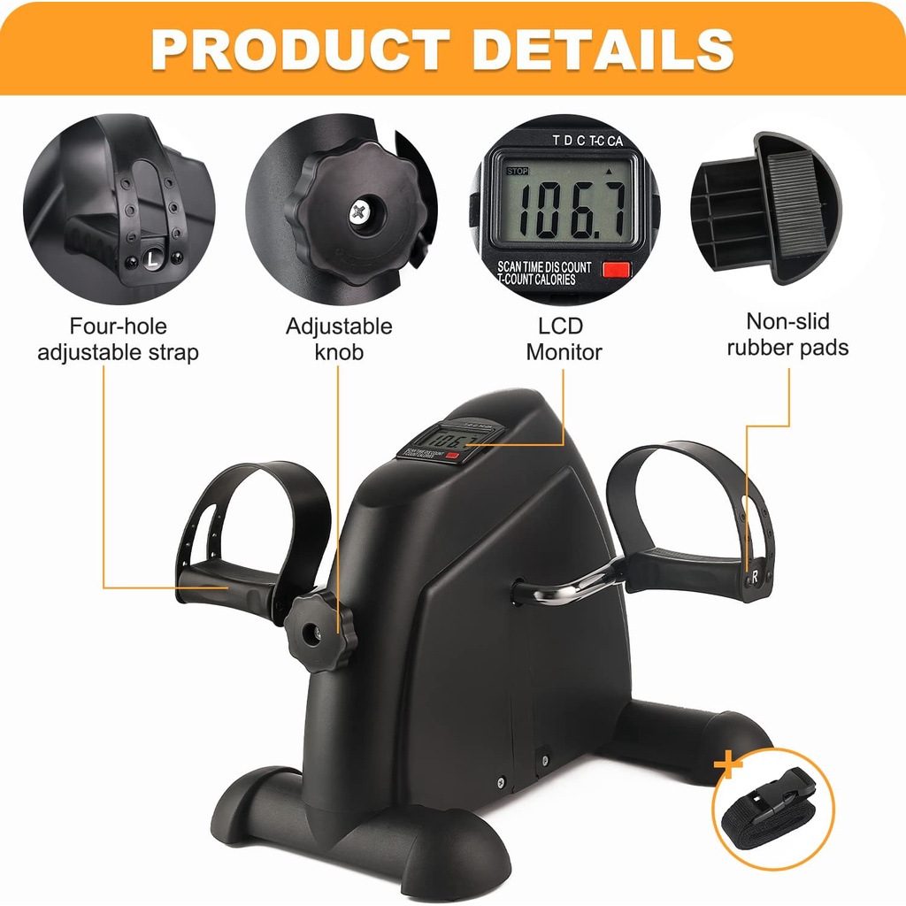 Under Desk Bike Pedal Exerciser - Portable Mini Exercise Peddler Bike for Legs/Arms Workout, Foot Pedal Exerciser for Seniors with LCD Display