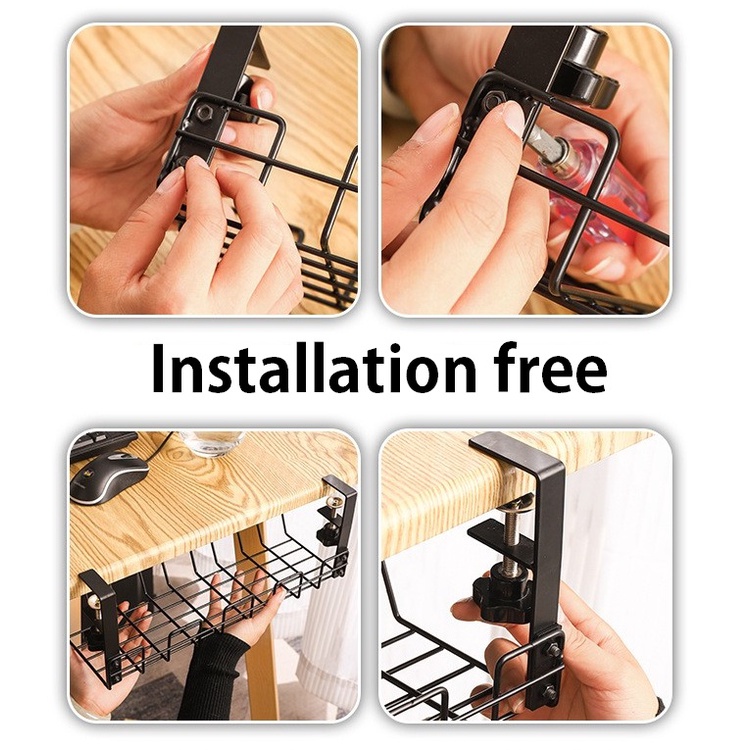 Under Desk Cable Management Under Table Organizer Tray Organizer Basket Box No Drill Required Comes With Clamp