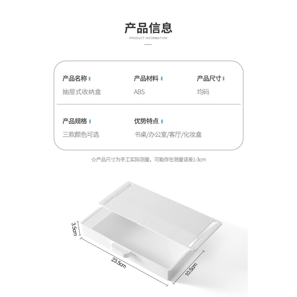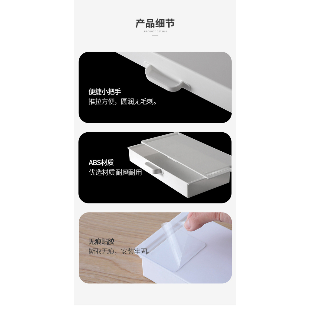 Under Desk Drawer Boxes, Self- adhesive Hidden Drawer Box Desktop Organizer Desk for Office Desktop Storage Box