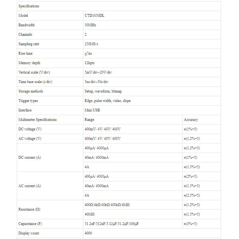 Uni-T UTD1050DL, 2ch 50MHz Handheld Digital Storage Oscilloscope