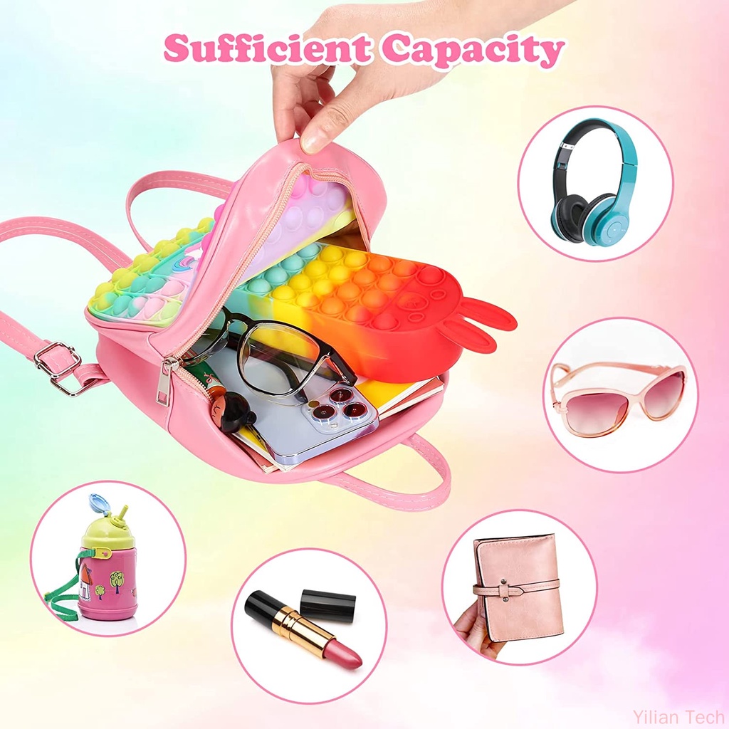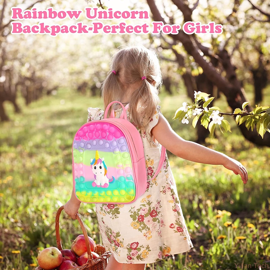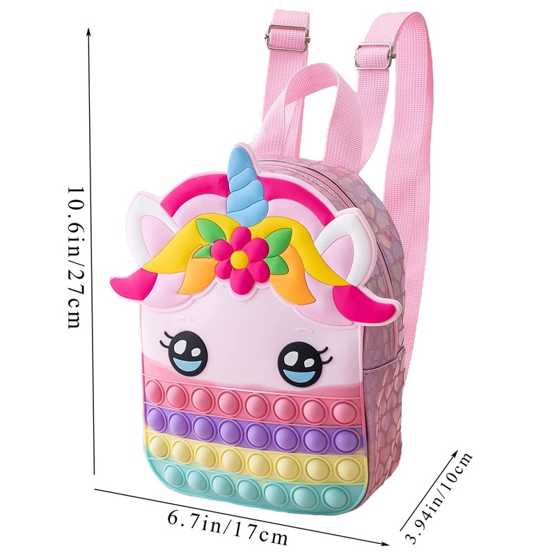 Unicorn Backpack Rainbow Unicorn Bag Unicorn Purse Push Pop It Fidget Toys School Book Shoulder Bag for Children's Birthday Party