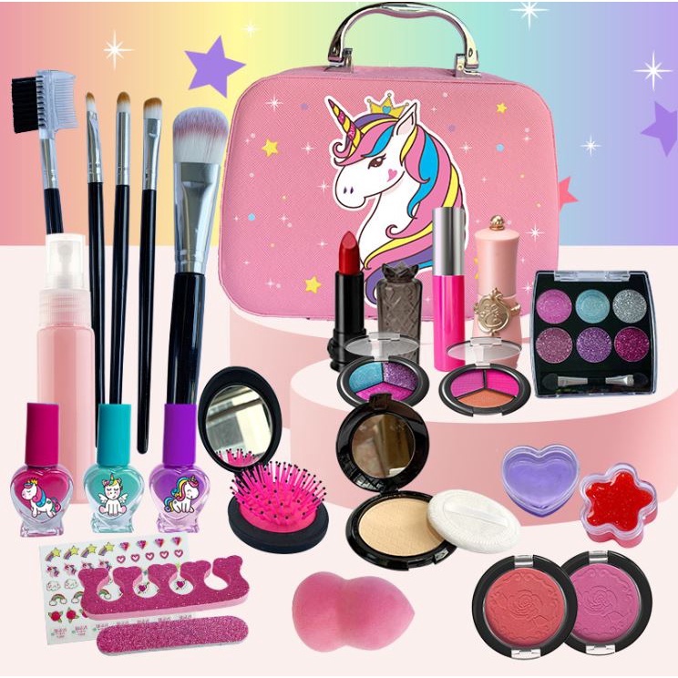 Unicorn Kids Makeup Kit Non-Toxic Make Up Beauty Toys Set with Stylish Bag Gifts Girls Fit Role Play Princess Dress Up