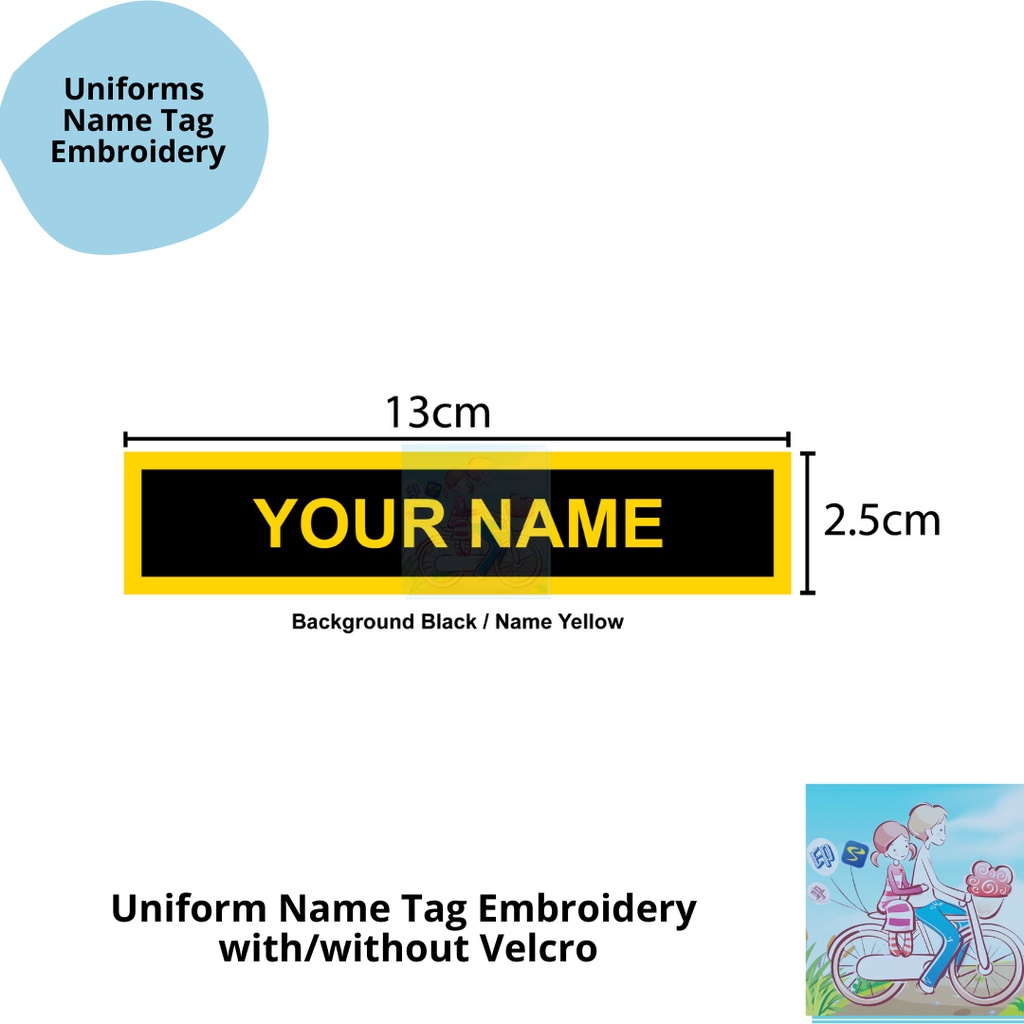 Uniform Name Tag Embroidery with Velcro Name Tag Sulam Nama