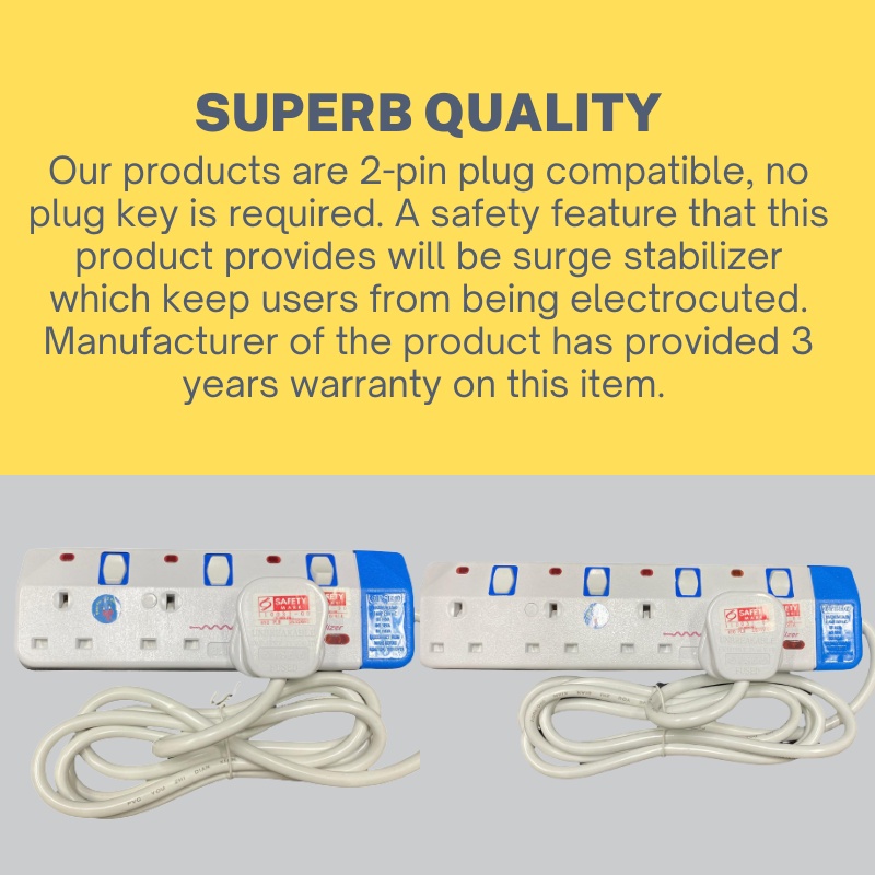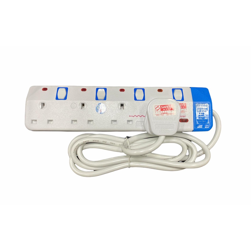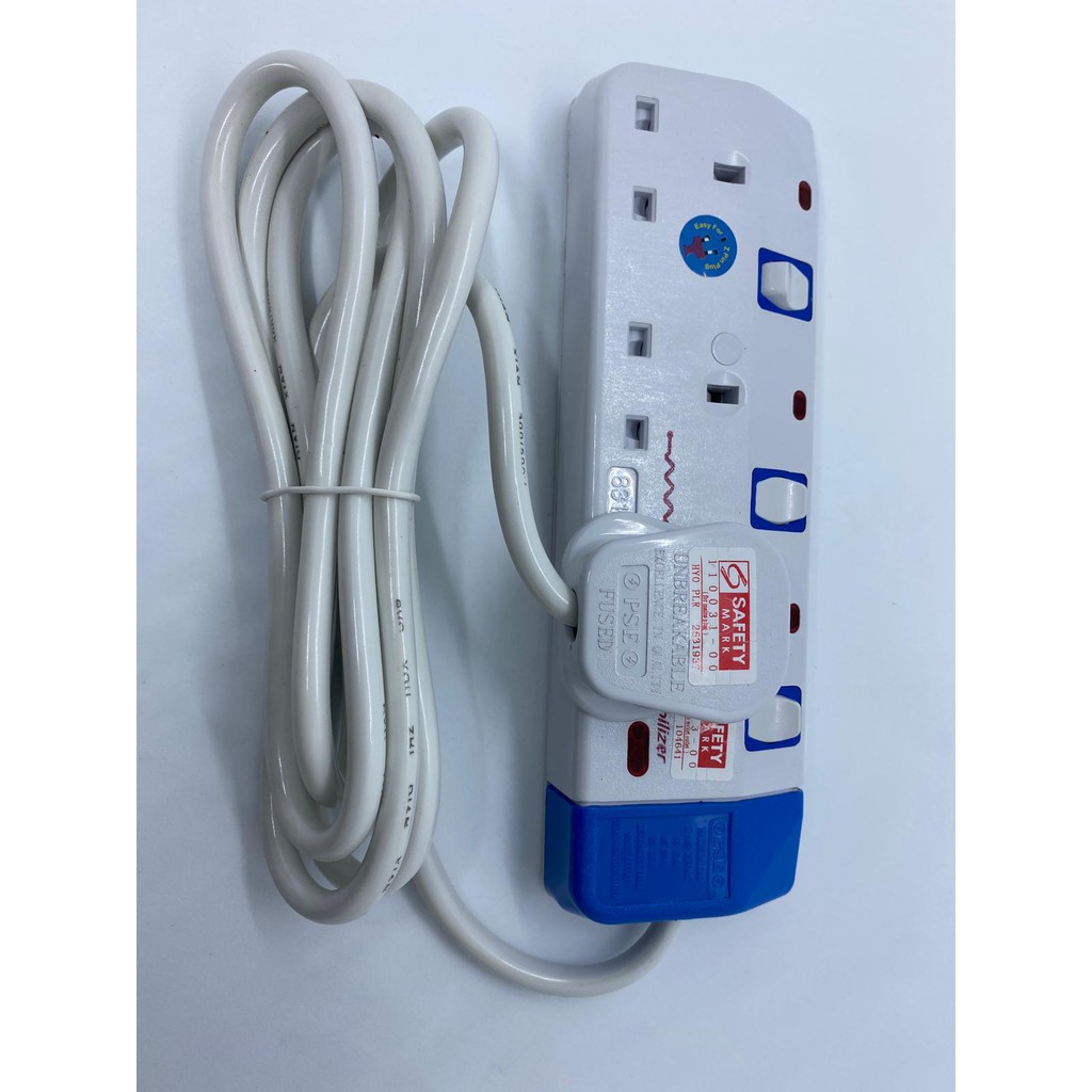 UnihomSG [ReadyStock] 3/4 Way Electrical Extension Socket Plug Surge Protector [SINGAPORE SAFETY MARKED] 2 meter cord