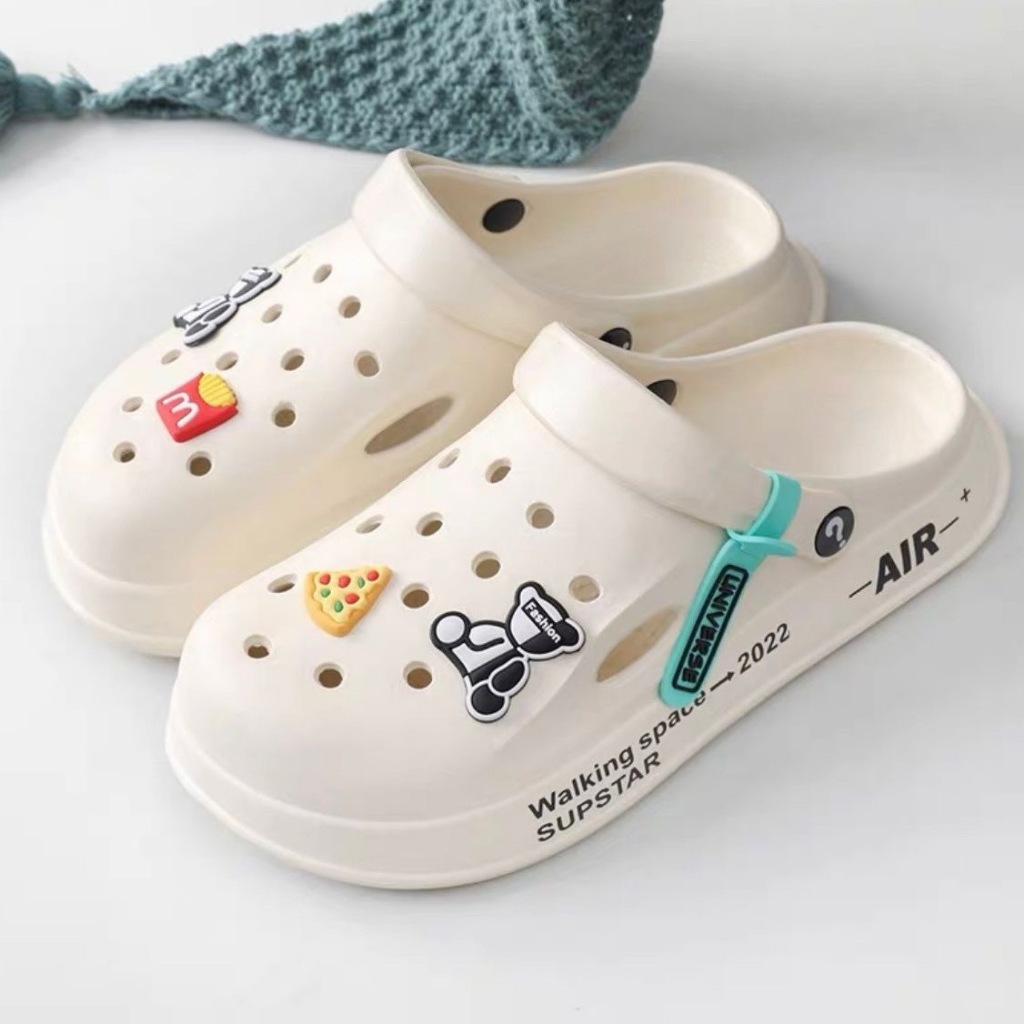 Unisex Men Women Sandals Hole Shoes PVC Home Garden Beach Summer Slippers Flat Man Slippers Wading Sneaker Non-slip