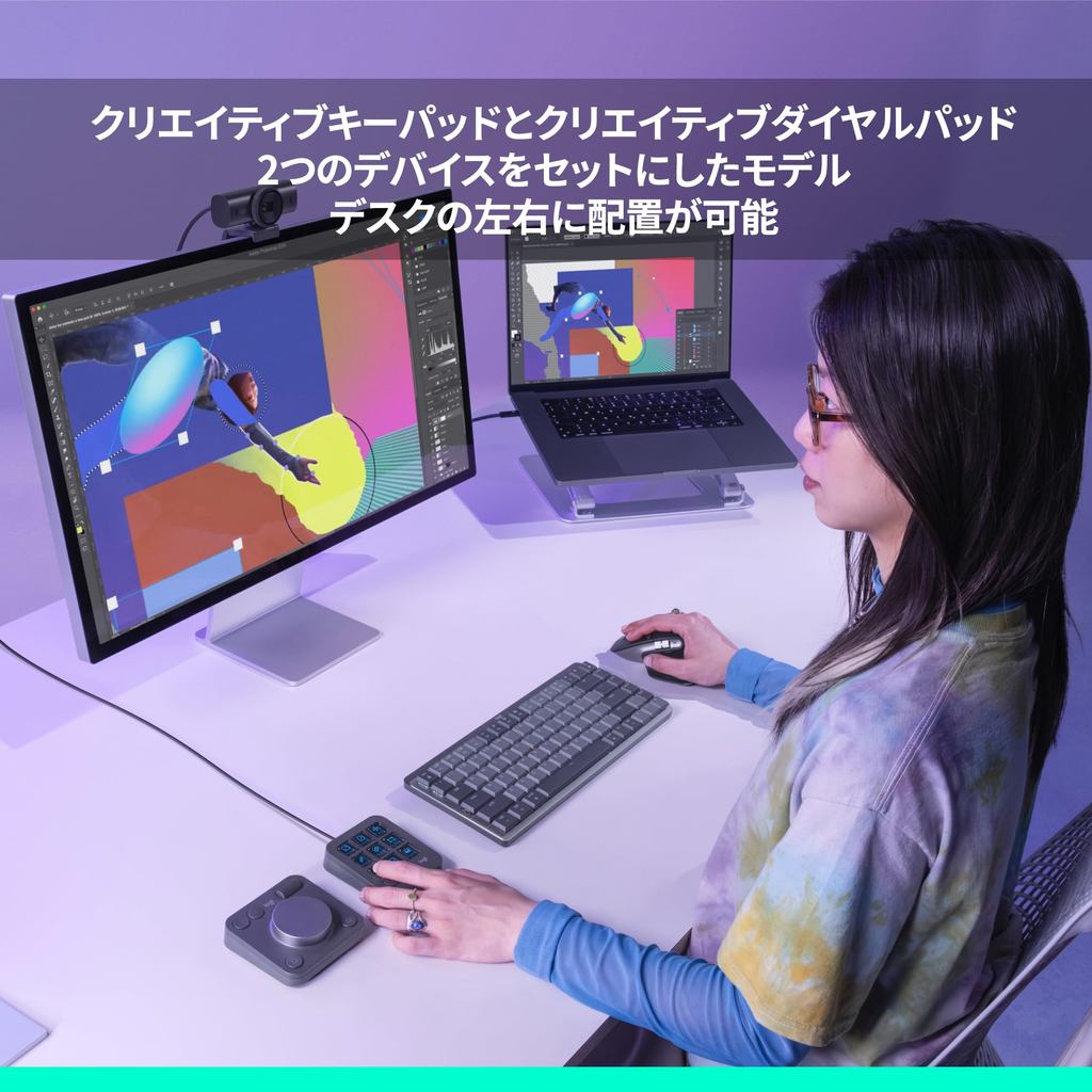 Logitech MX Creative Console KXCCG/KXCCP Left-Hand Device Keypad Dial Pad for Graphic & Video Editing - Compatible with DaVinci Resolve, Adobe Photoshop, Illustrator, Premiere Pro, After Effects, Audition - Bluetooth & USB Type-C - Domestic Model