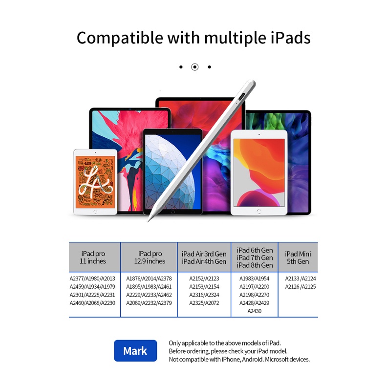 Universal Active Stylus Pencil Touch Screen Smart Pen Writing & Drawing for iPad/Pro/Air/Mini/iPhone/ IOS/Android/Tablet