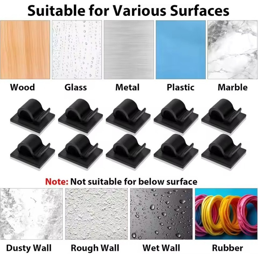 Universal Self-adhesive Wire Clip Hook - Cable Organizer Clips for USB Charging Data Lines - Winder Wall Mounted Wire Holder for Home Office