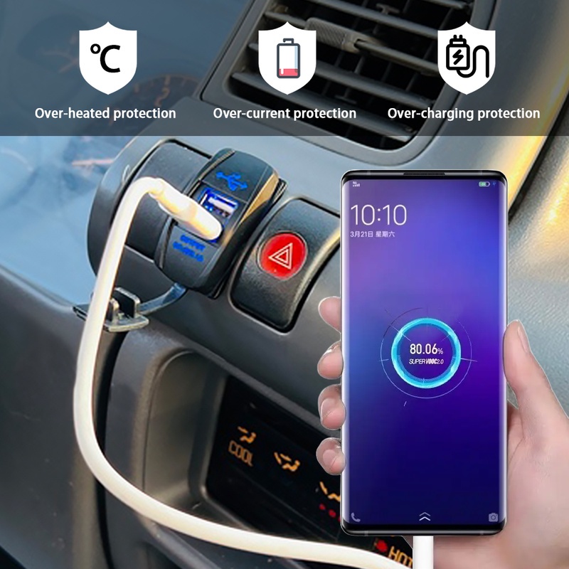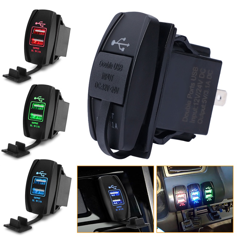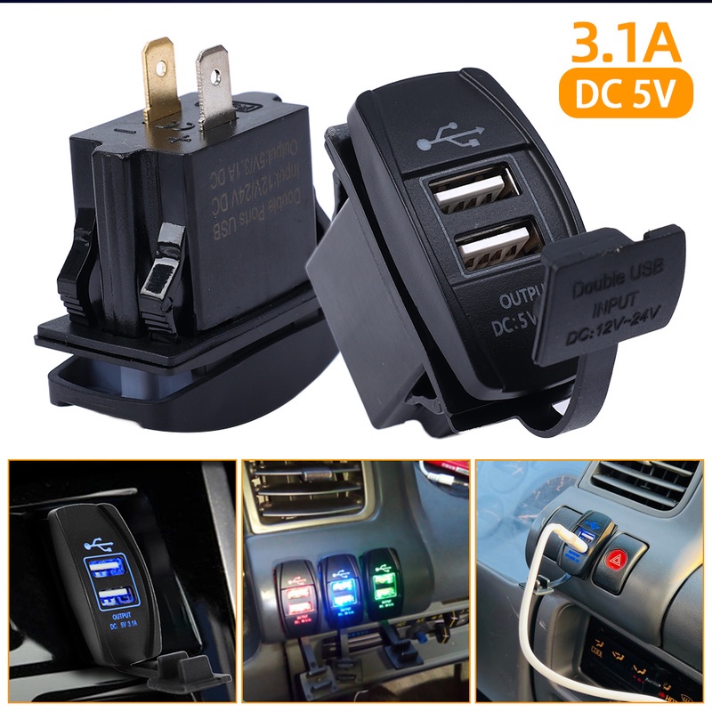 Universal Vehicle Dual Port USB Charging Dock / 3.1A Car Quick Fast Charge USB Charger Rocker