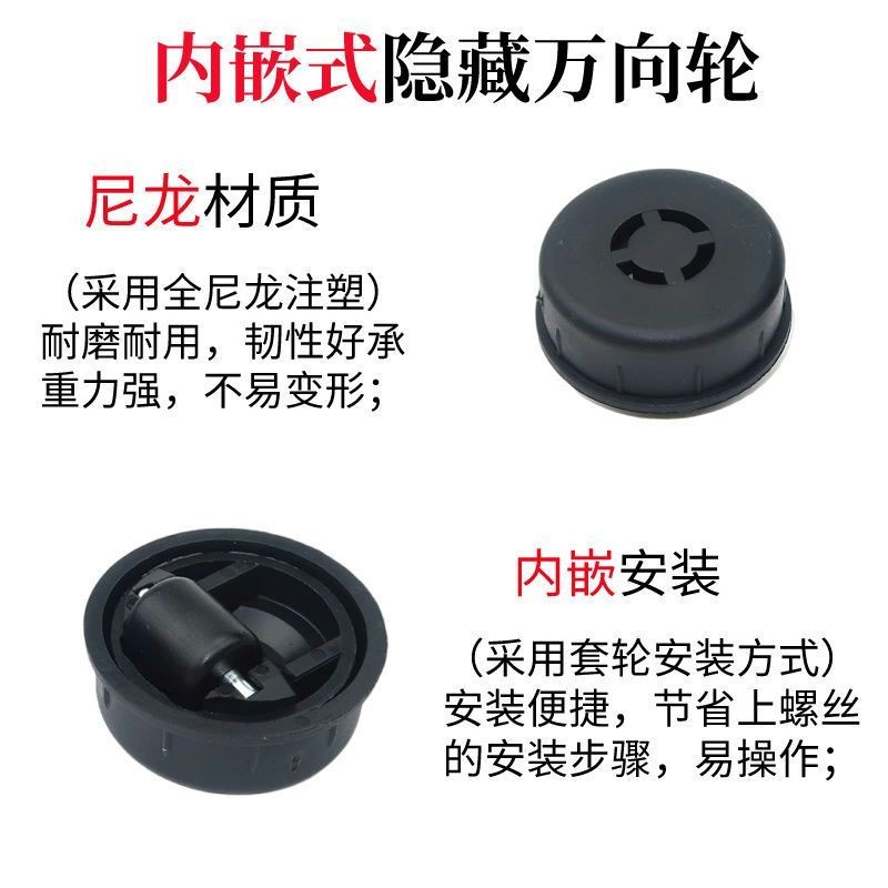 Universal Wheel Hidden Furniture Bottom Wheel Cabinet Bottom Pulley Wear-Resistant Wheel Embedded Pulley 2718