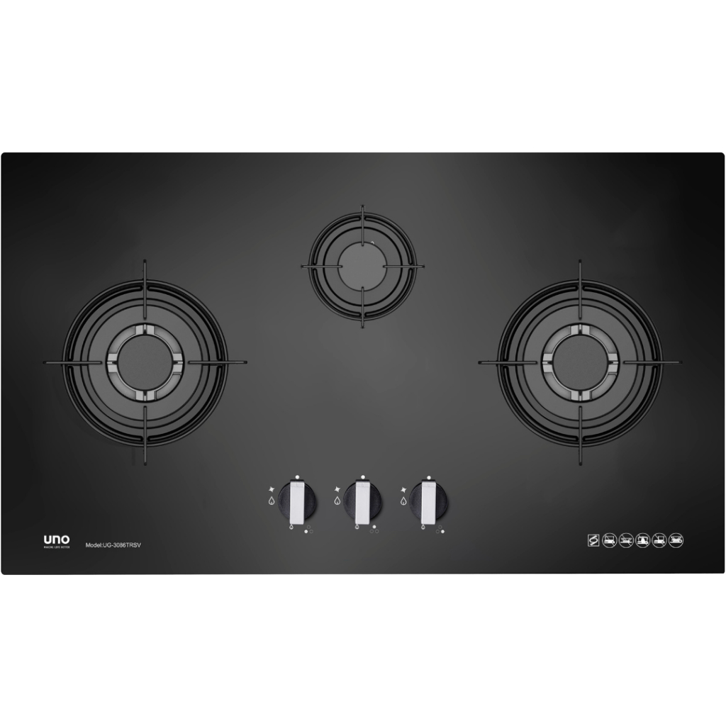 Uno 86cm 3 Burner Tempered Glass Cooker Hob Gas Stove UG3086TRSV