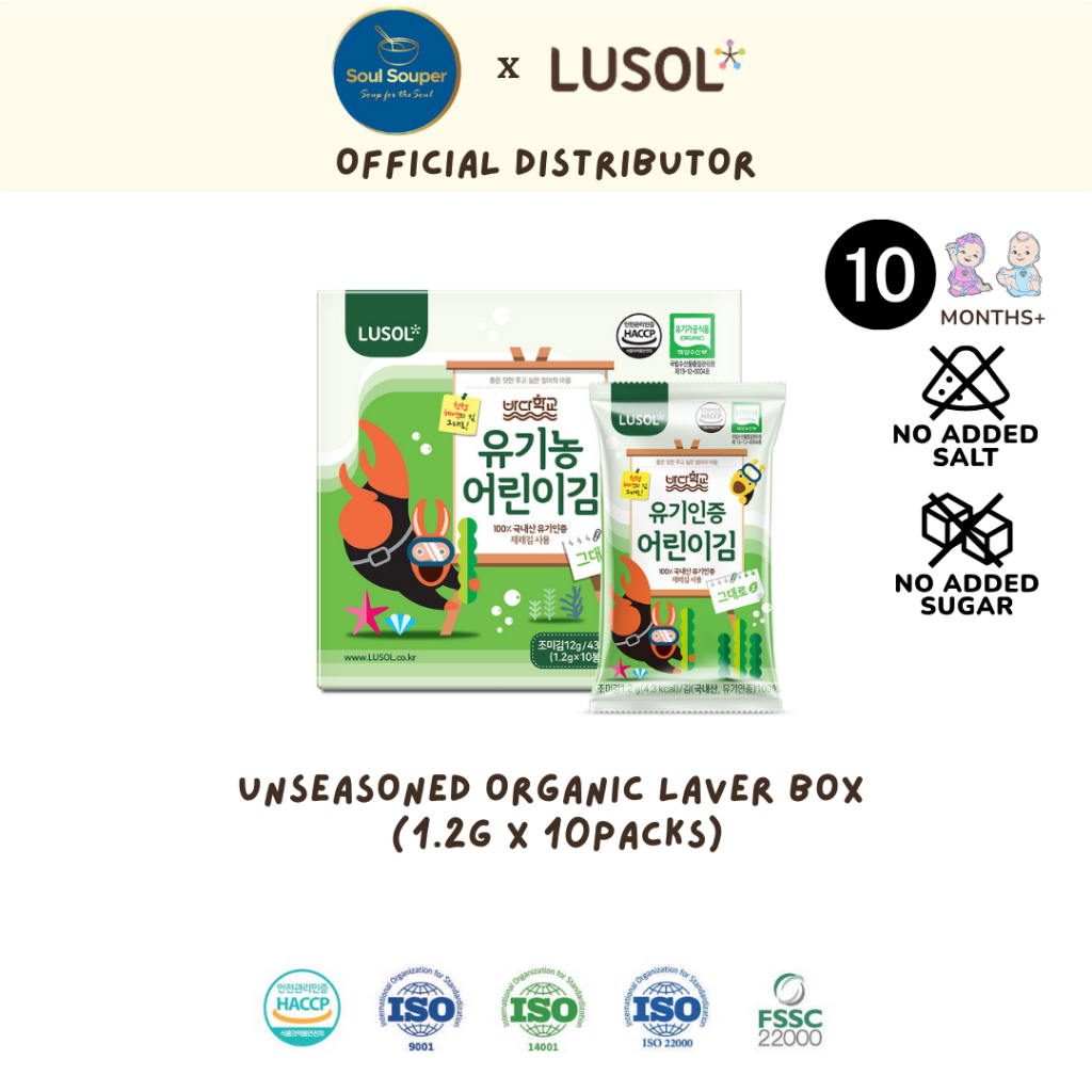 Unseasoned 100% Organic Seaweed Box (1.2g x 10 packs) - 10months+