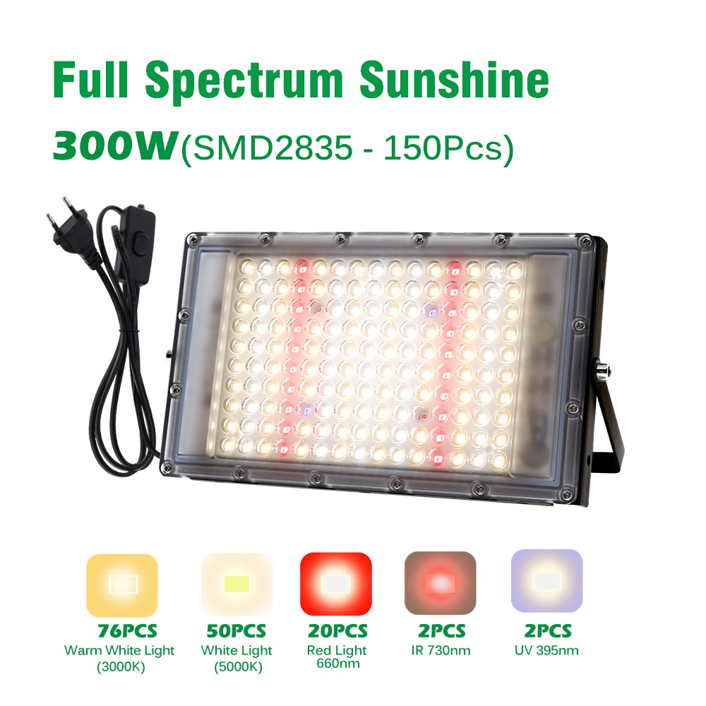 Upgrade LED Grow Light Full Spectrum 50W 100W 300W Plant Light Sunlight Grow Lights For Indoor Plants Greenhouse Veg and Bloom With Plug