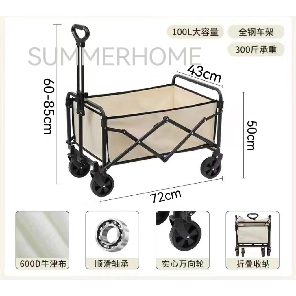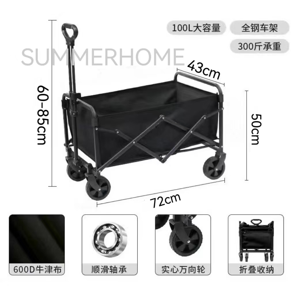 Upgraded Folding Wagon Trolley Cart Utility Garden Cart Collapsible with Wheels for Outdoor Camping Trolley Cart