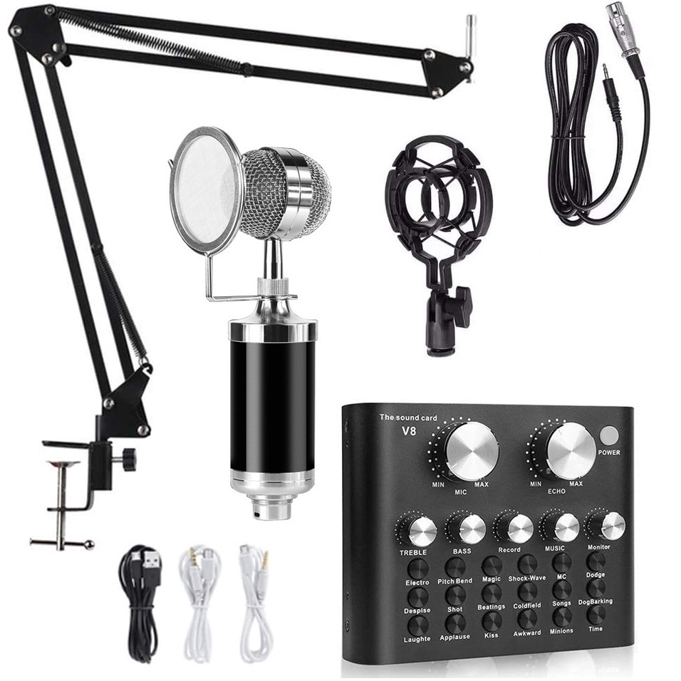 V8 Pro Audio USB Headset Microphone (BLUETOOTH) Webcast Live Sound Card for Phone Computer (English Version)