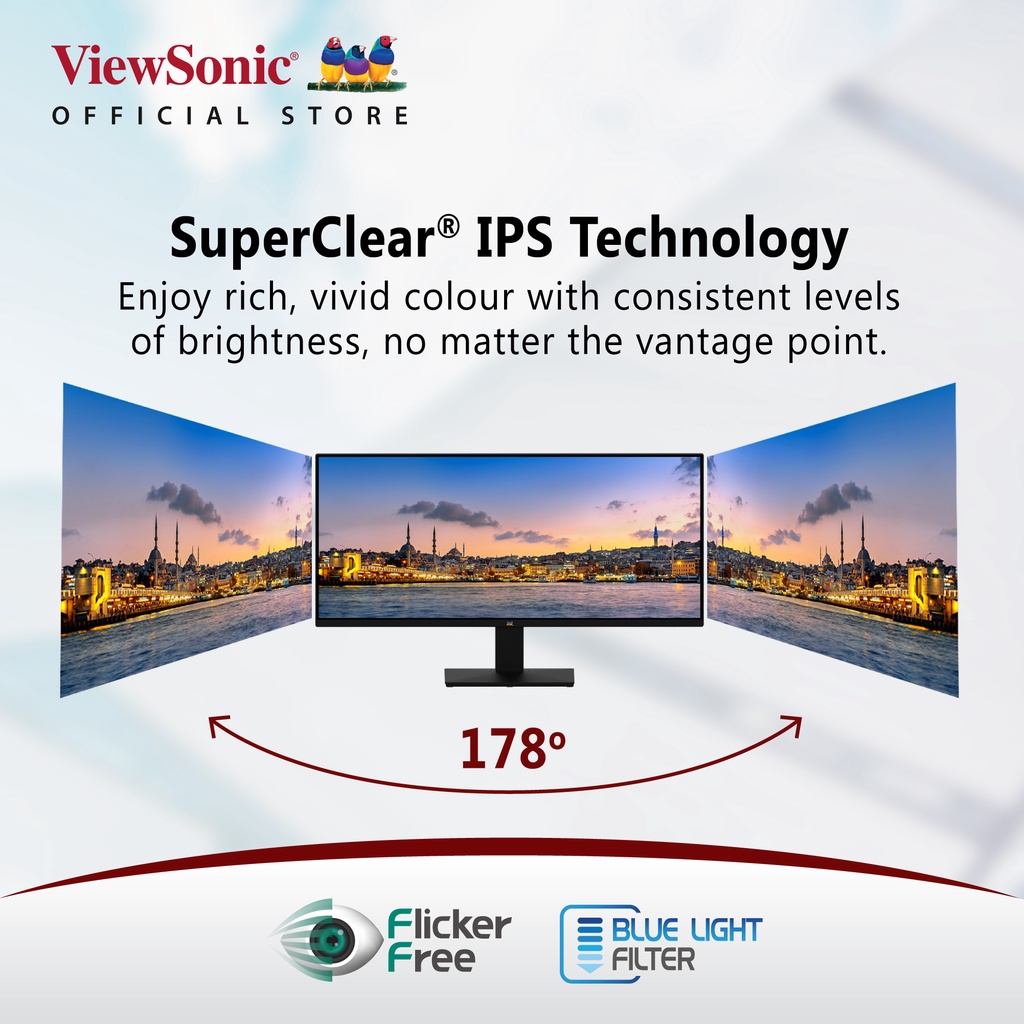VA2932-MHD - ViewSonic 29" ultra-wide 21:9 borderless 75Hz adaptive-sync IPS Monitor, eye-care, HDR10 Ready