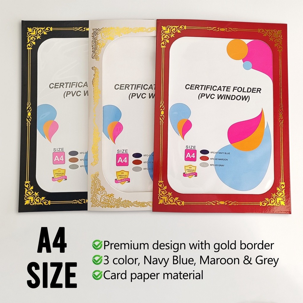 VC Art A4 Certificate Holder Hard Cover with Gold Border PVC Waterproof Durable Fail Sijil University Graduate Certificate Folder
