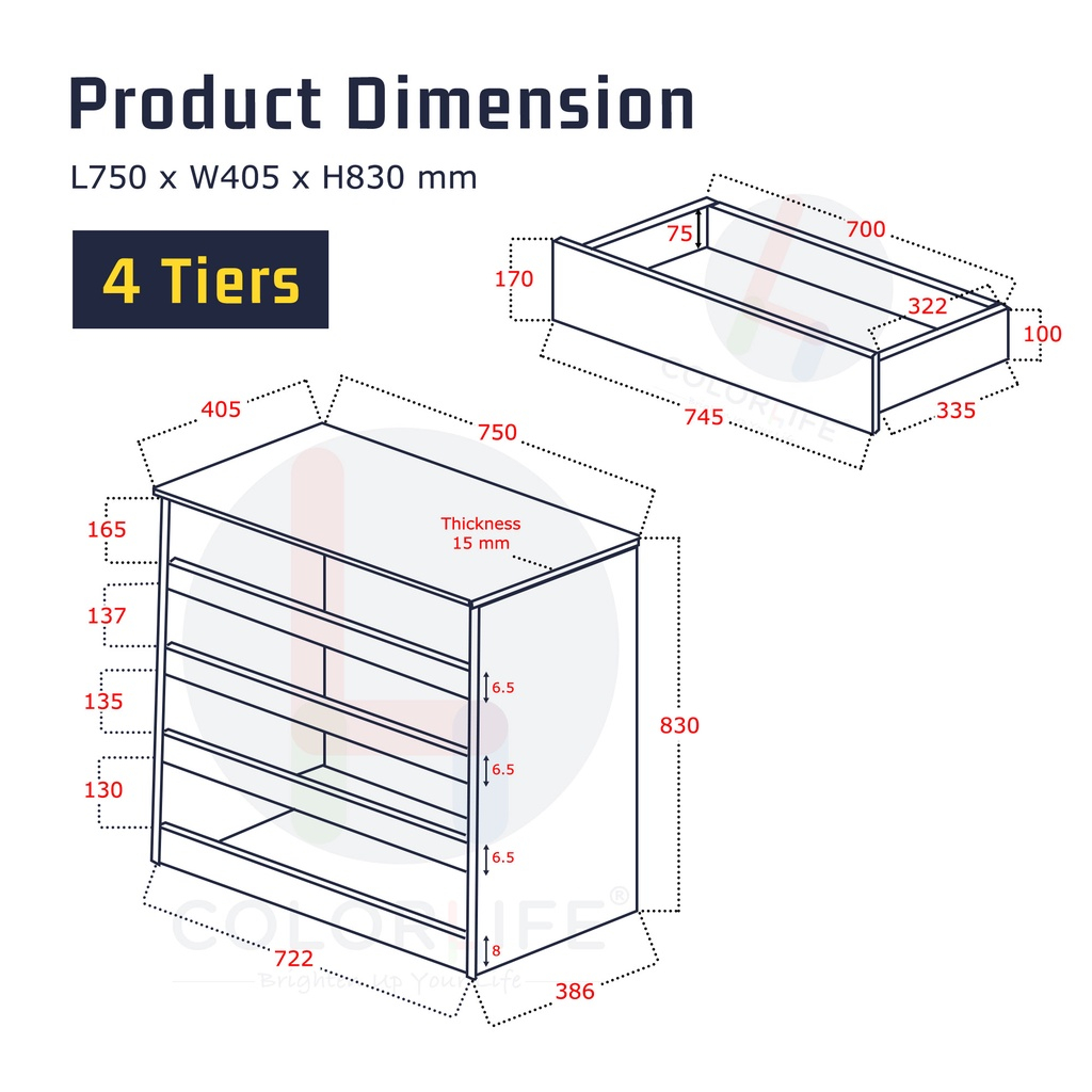 VHIVE Nora 75cm Chest of Drawers with Lock (Dresser Drawer Chest Storage Cabinet Cupboard)