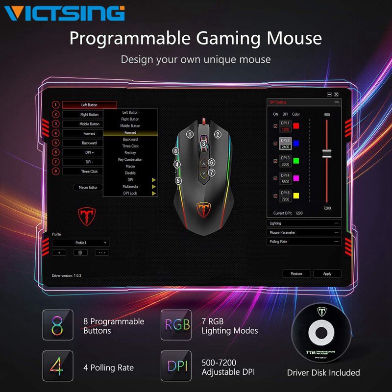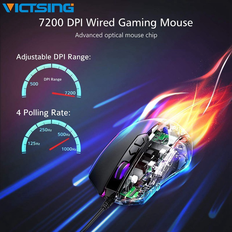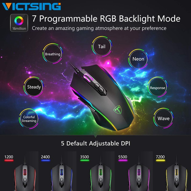 VICTSING Gaming Mouse Wired 8 Programmable Buttons Chroma RGB Backlit 7200DPI Ergonomic Optical Mouse