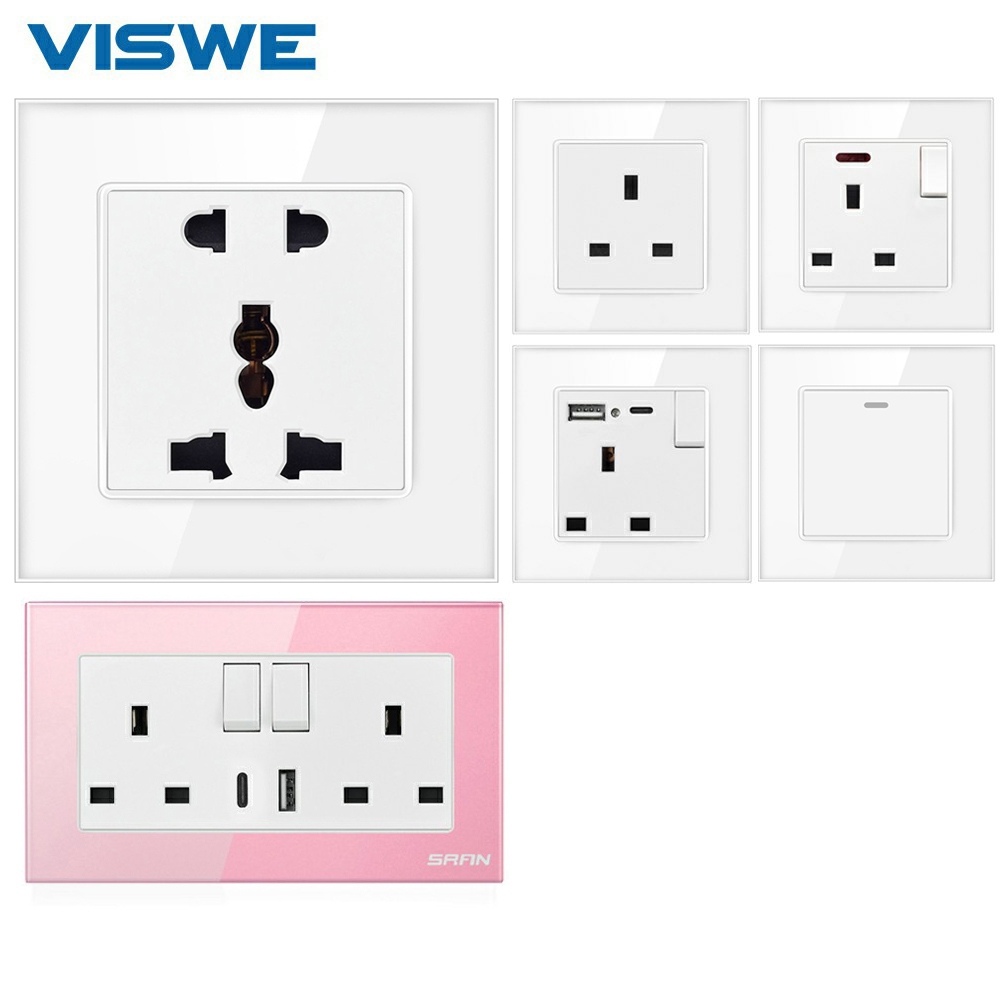 VISWE USB Socket Universal Socket Double Socket Wall Socket Wall Switch Light Switch White Tempered Glass Material A6 Series
