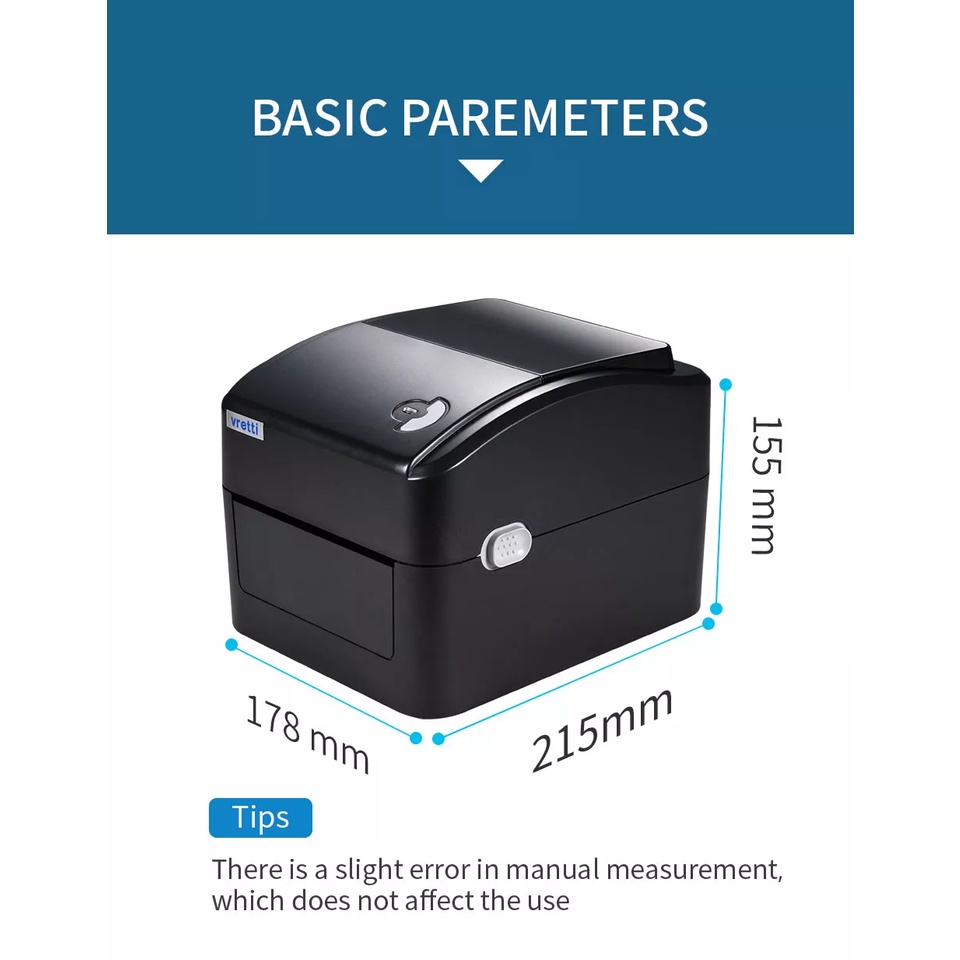 VRETTI Thermal Shipping Label Printer, Adjustable 20-118mm 4"x6" Barcode Label Printer