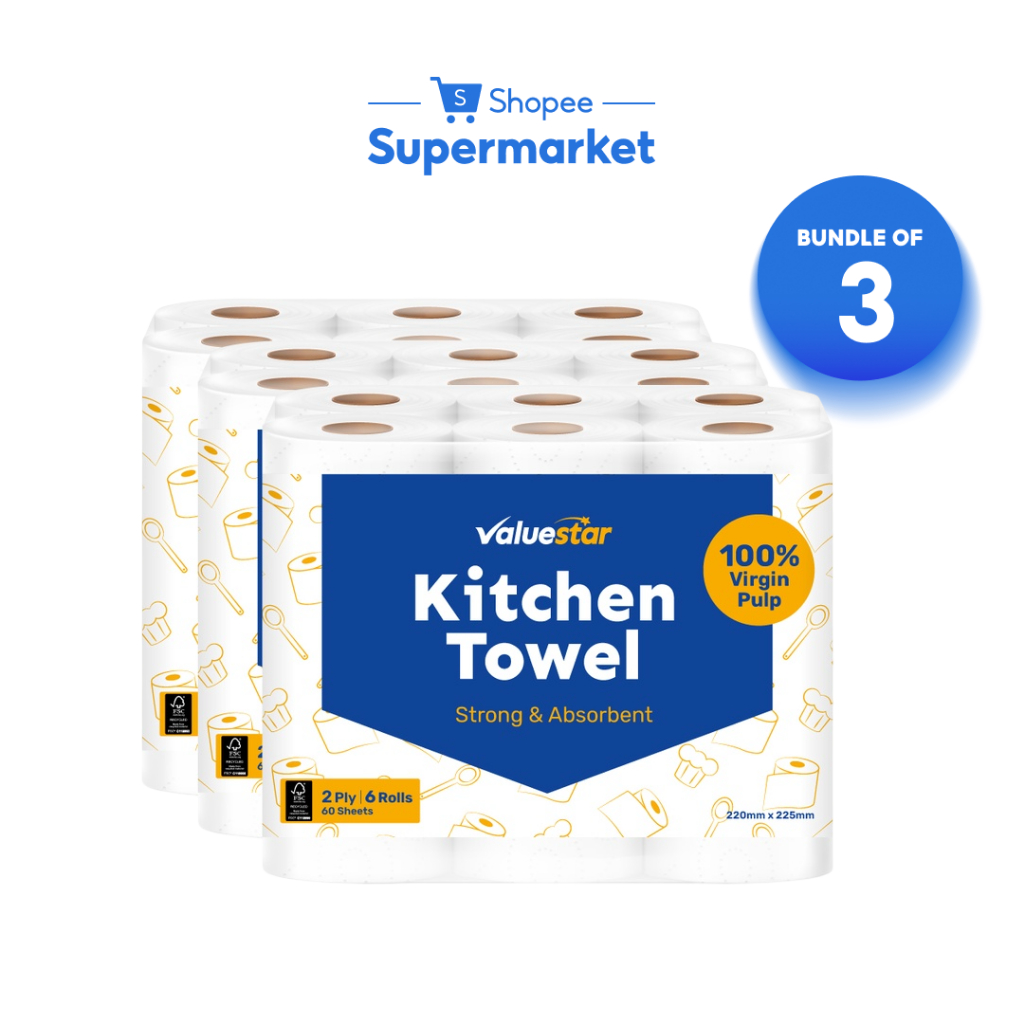 [Bundle of 1/3] ValueStar Kitchen Towel 2-ply (6x60 sheets)