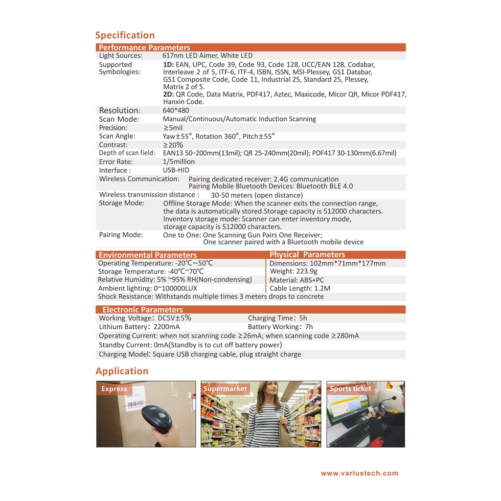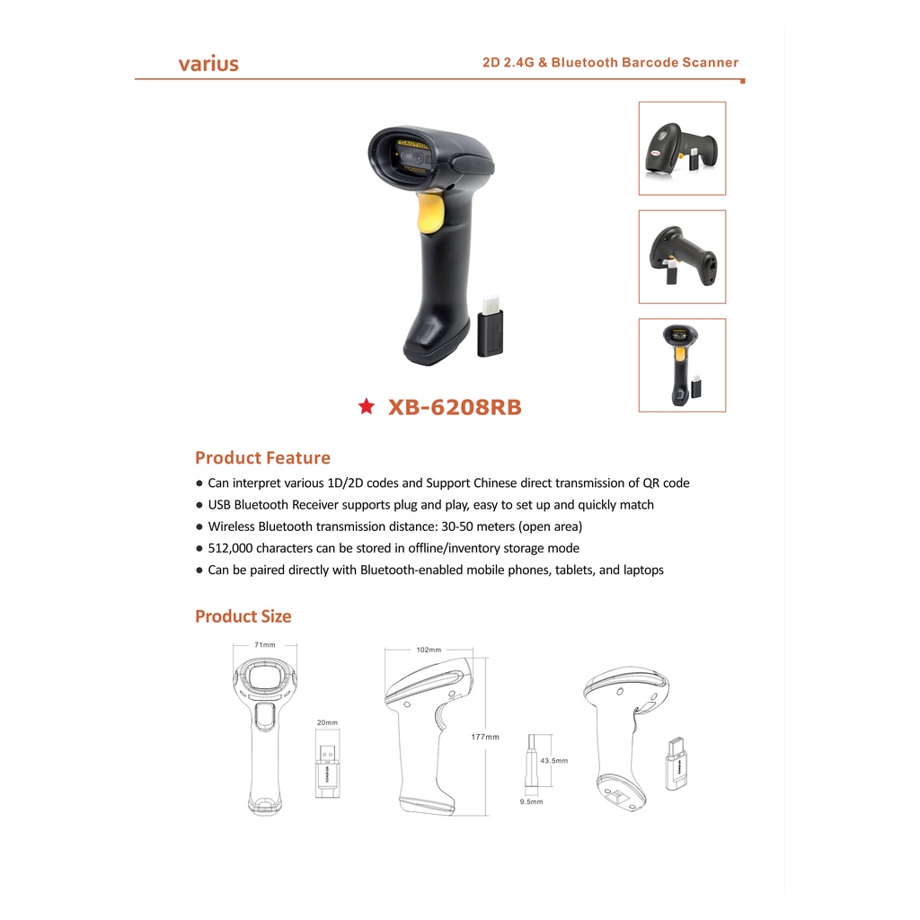 Varius XB-6208RB Barcode scanner with stand (Bluetooth + wireless + USB combo) (1 year warranty)