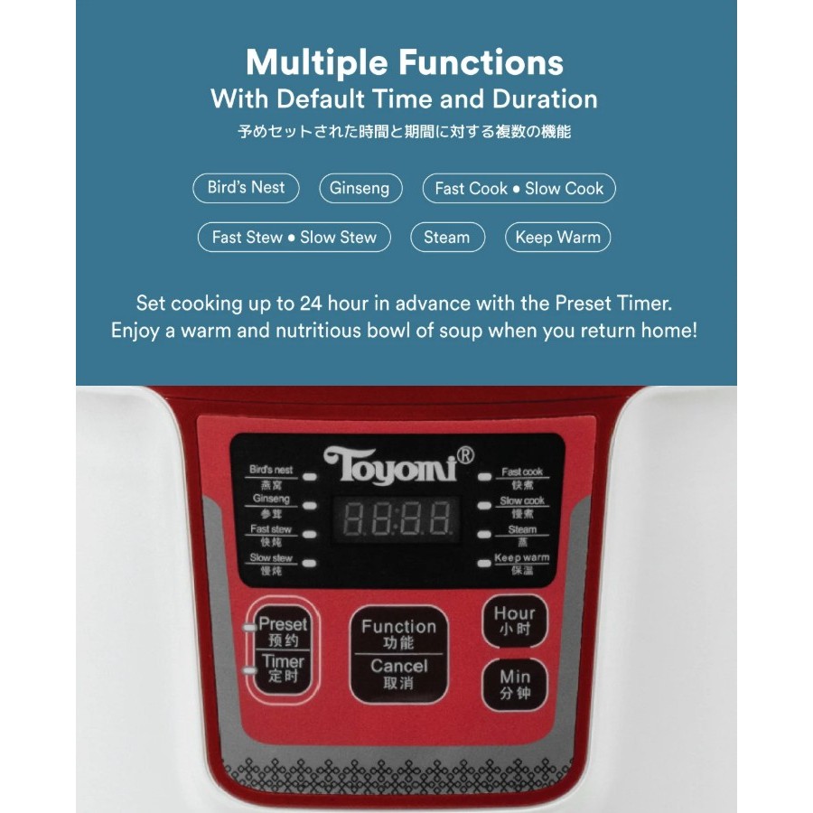 Toyomi (SC 3289) 3.2L Double Boiler, Stew Cooker & Steamer *Available in new colour*