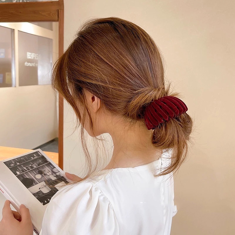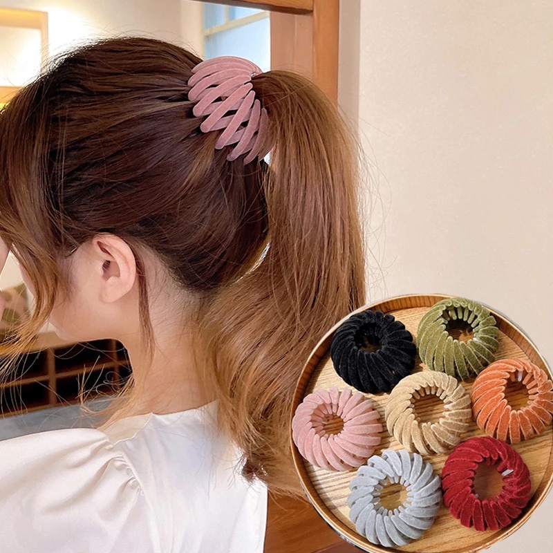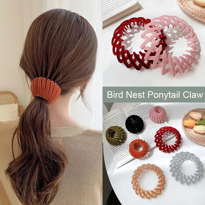 Velvet Horsetail Buckle Hair Clip Bird Nest Expanding Hair Claw / Female High Ponytail Fixed Grab Clip / Women Korean INS Fashion Hair Accessories