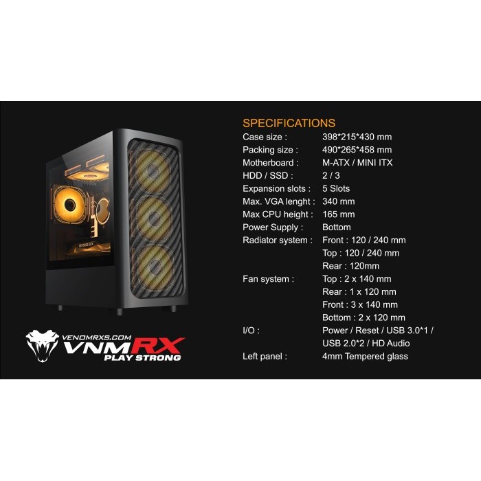 VENOMRX RIO PC Case Includes 3 Fans ARGB M-ATX MINI-ITX MATX Computer Casing