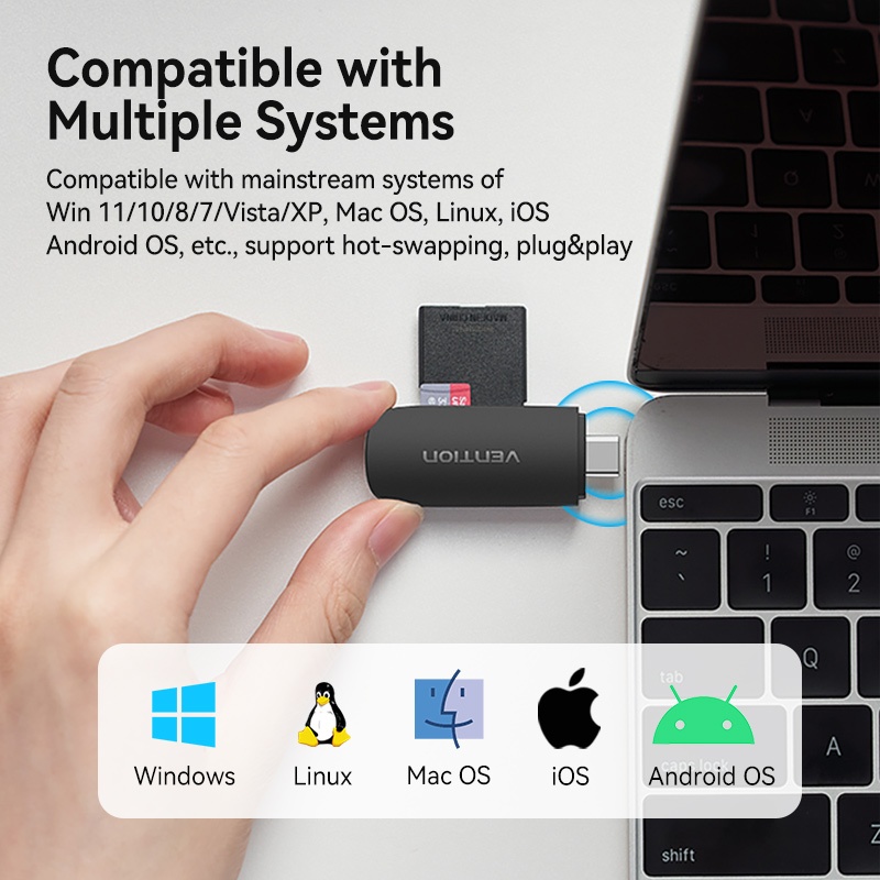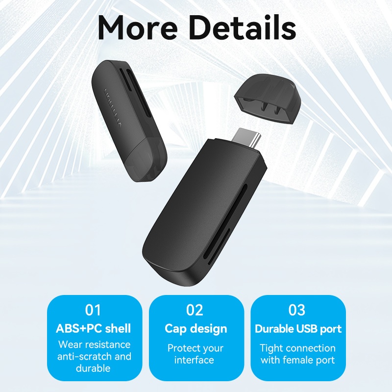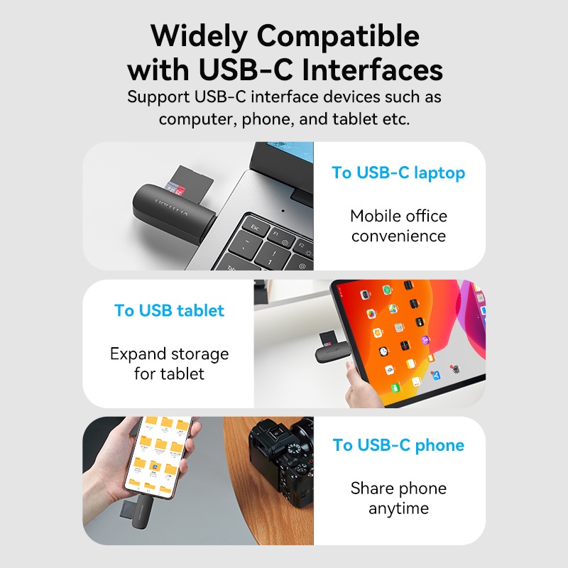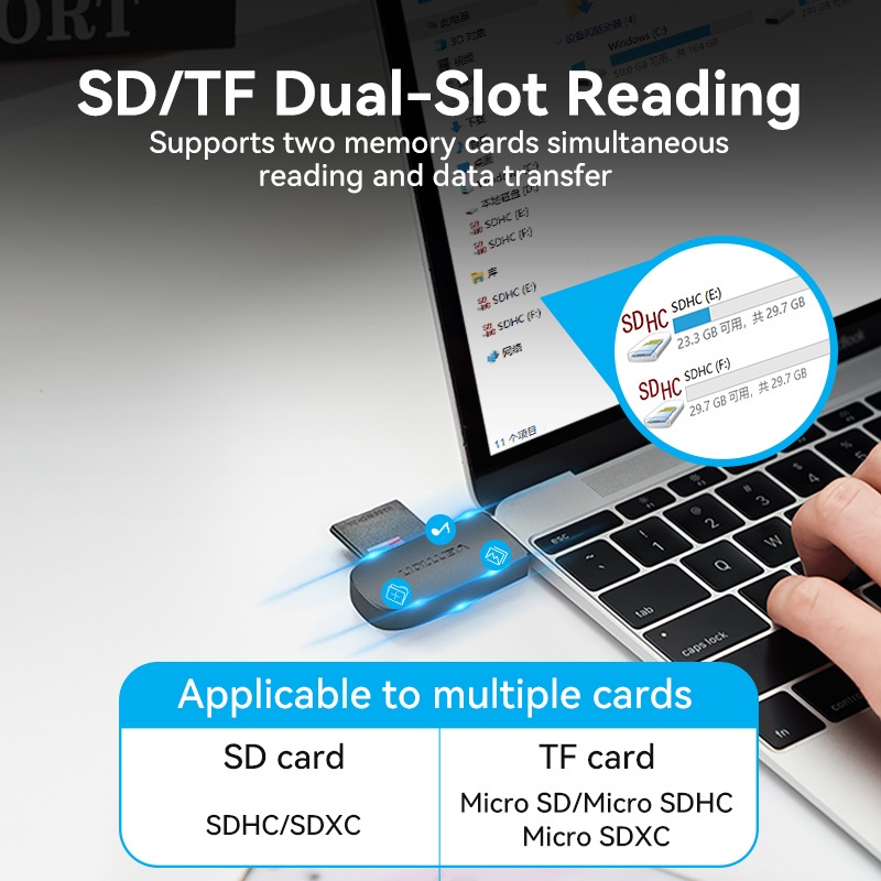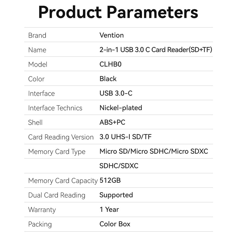 Vention Card Reader USB 3.0 Type C 512GB Fast Transmission 2 in 1 SD Card Reader TF Card Dual Card Reading Micro SD TF 2