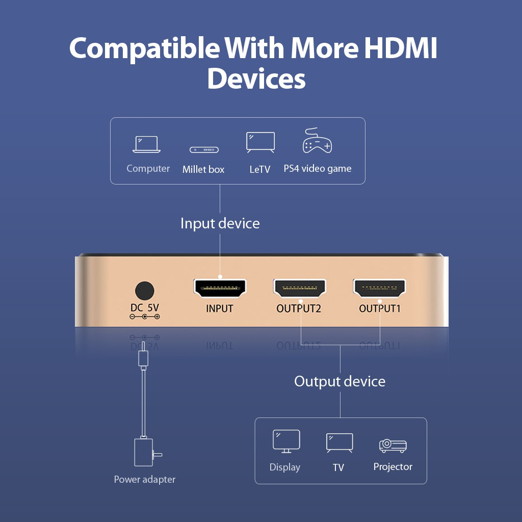 Vention HDMI Switcher 1 Input 2 Output 4K HDMI Splitter with Power