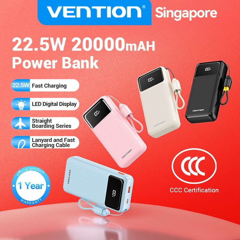 Vention Power Bank Fast charging digital display powerbank 10000mAh 20000mAh Portable Slim Charge Charger 22.5W