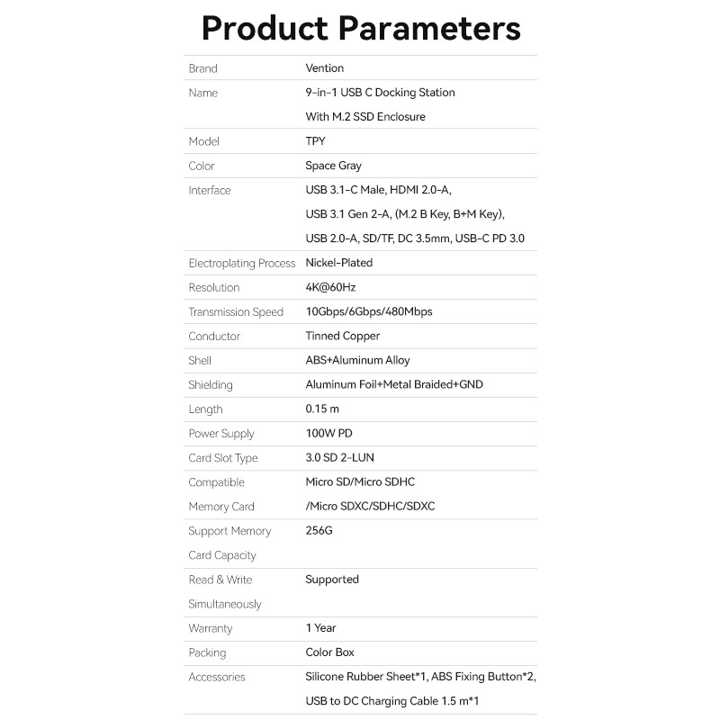 Vention USB C Hub 9 in 1 Upgrade PD100W Type C to USB 3.0+HDMI+RJ 45 Hub Adapter Type C HUB Dock PC USB HUB 9in1 8in1