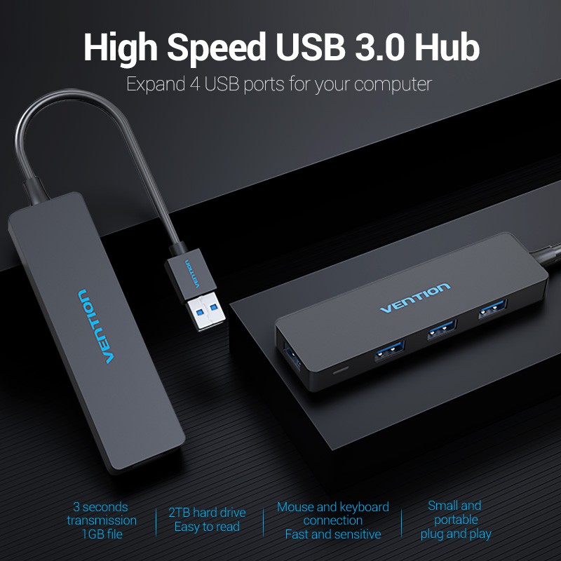 Vention USB HUB Multiple 4 Ports Splitter Fast Speed USB3.0 Plug and Play OTG Printer for Laptop PC